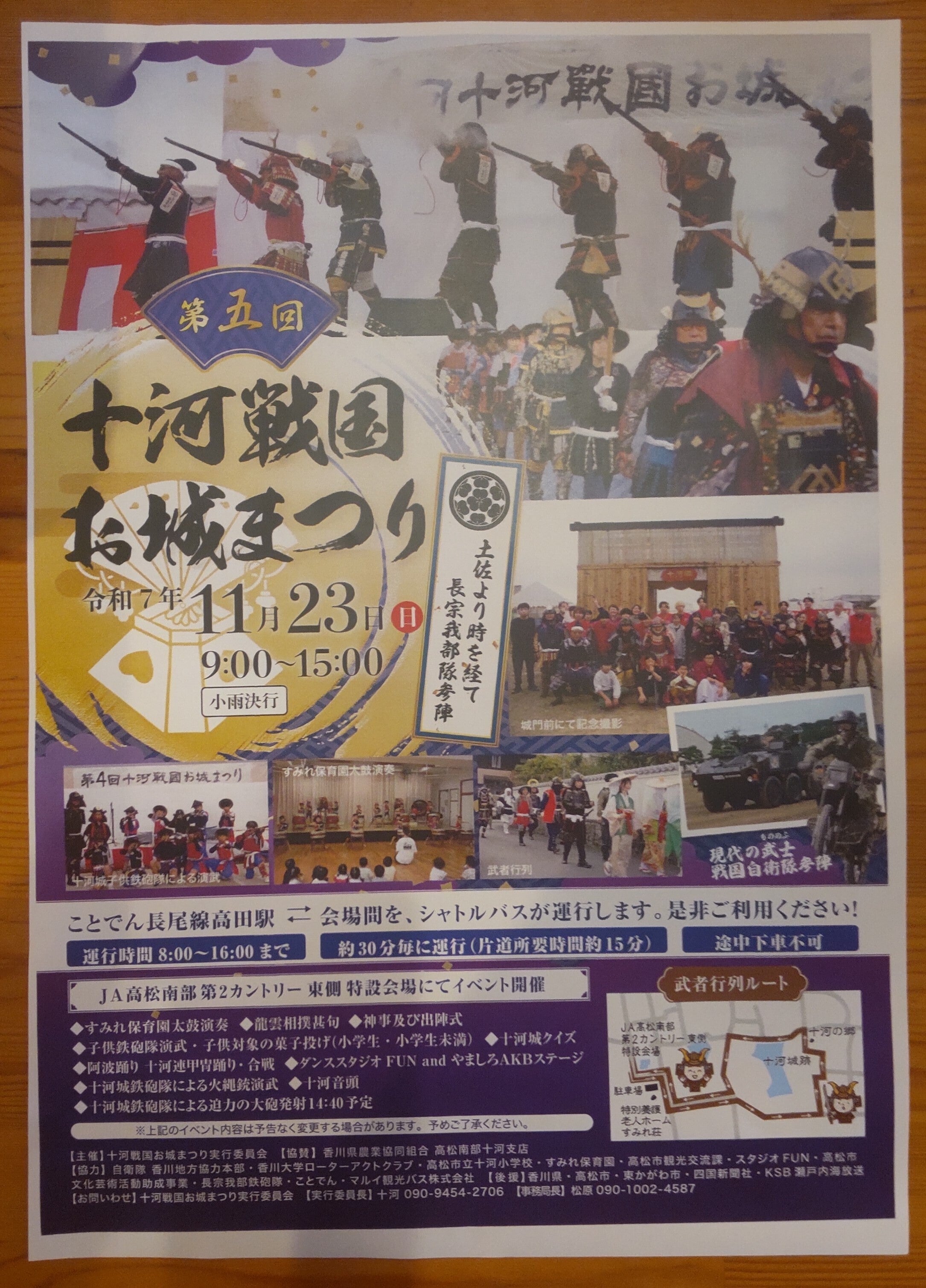 このお祭りは、戦国武将の十河氏の子孫が中心となって運営しており、地元の十河甲冑隊や全国から集まった武士たちが練り歩きます。また、鉄砲隊による演武、ご当地アイドルによるコンサート、阿波踊り、書道パフォーマンス、自衛隊の展示や讃岐うどんなどの地元郷土料理でおもてなしをします。そして、地域の文化や歴史にふれ、地元の人々や訪れる観光客にとっても貴重なイベントとなっています。