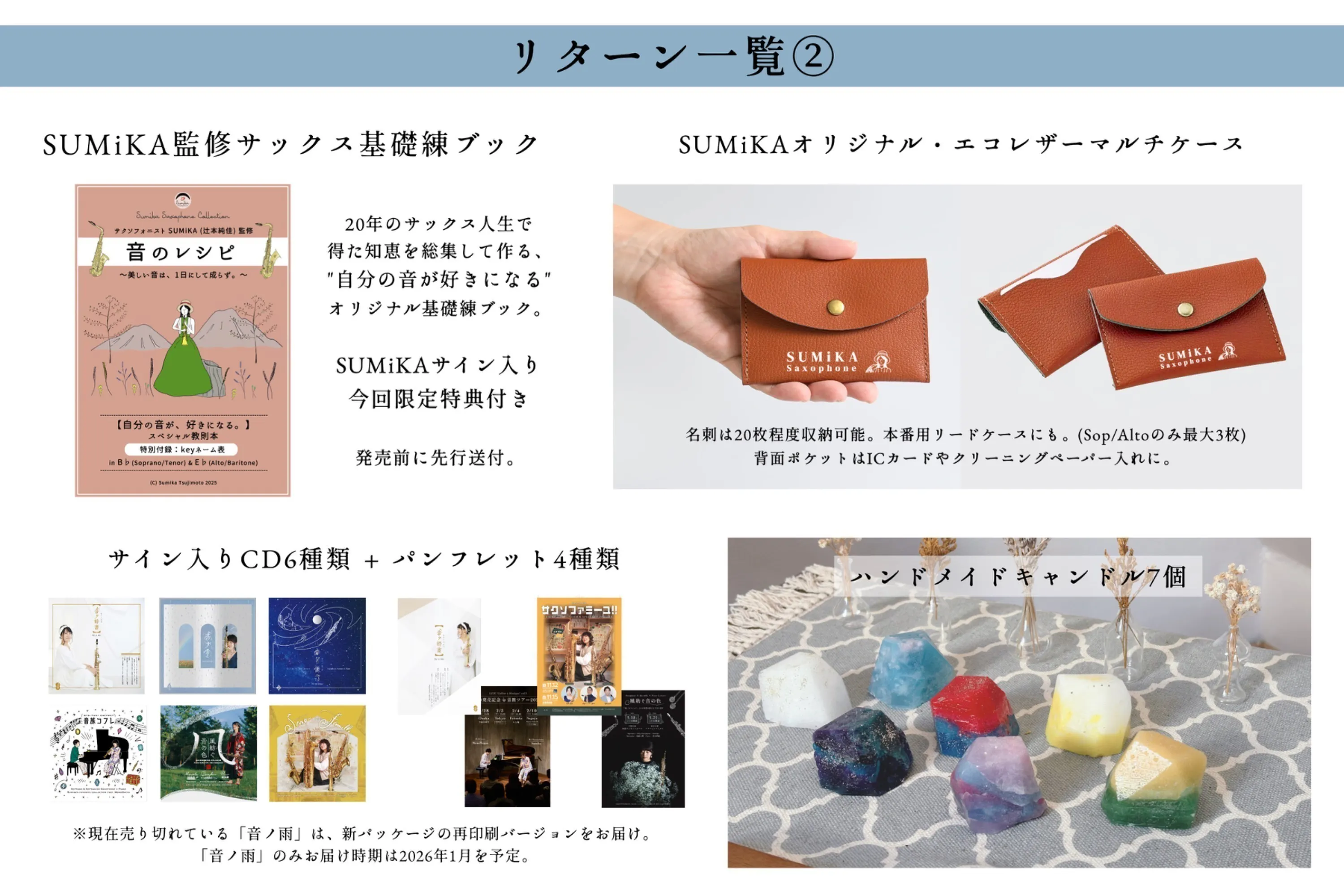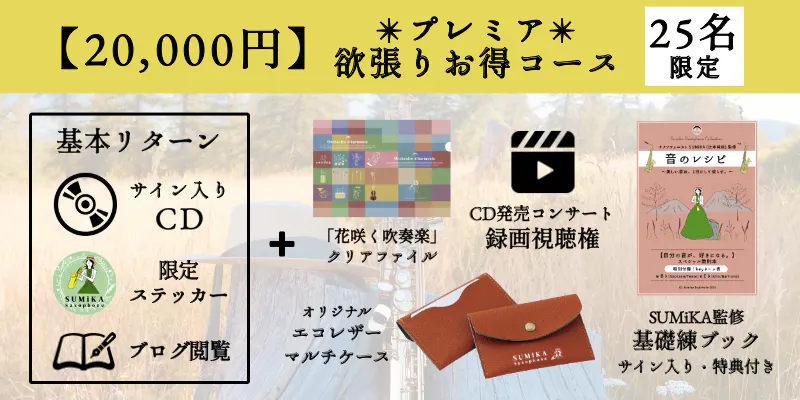 📕【SUMiKA監修サックス基礎練ブック「音のレシピ」】20年のサックス人生で得た知恵を総集して作る、"自分の音が好きになる"オリジナル基礎練ブック。サイン入り・今回限定特典付きで、発売前に先行送付。