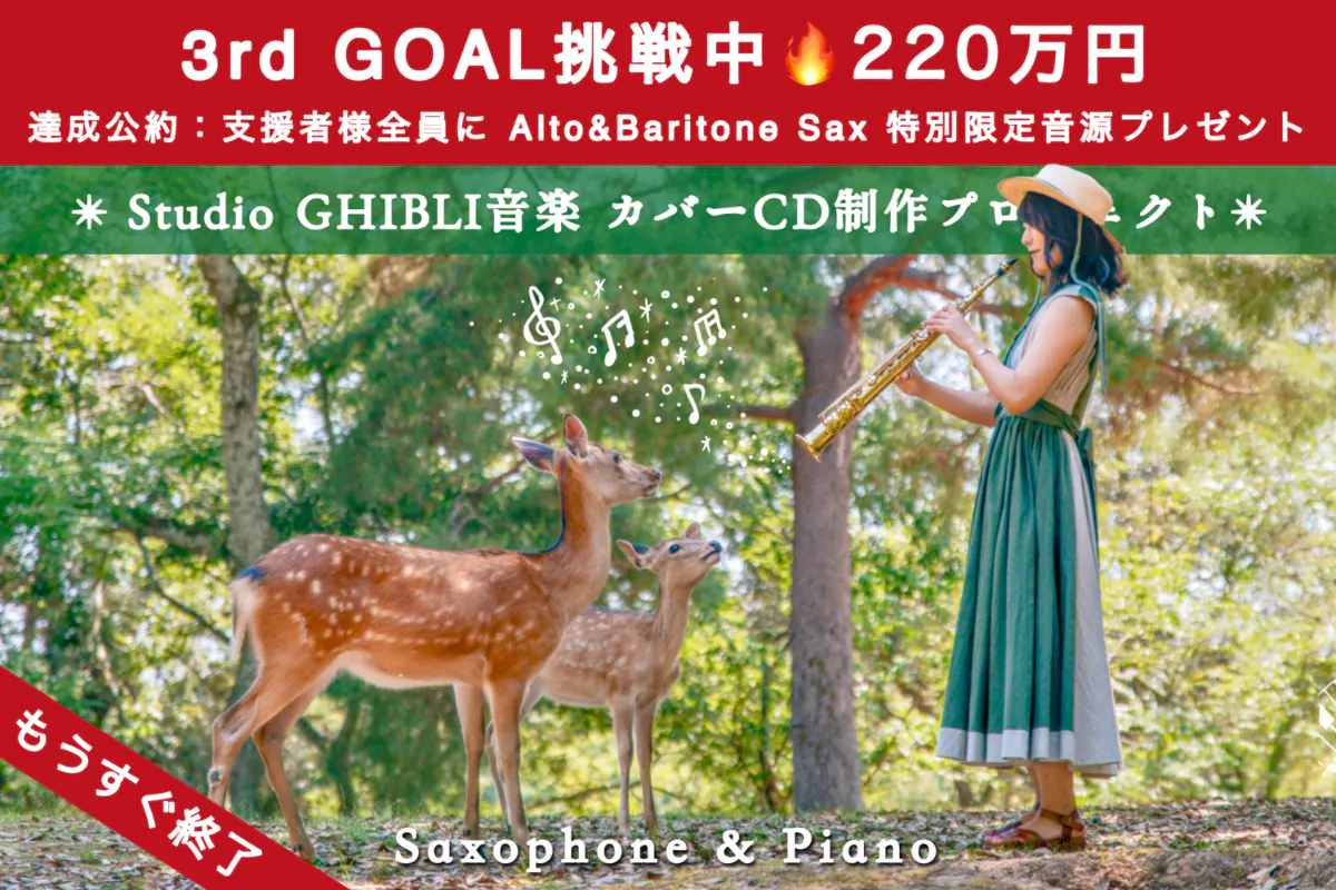 支援者様《全員》に、Alto & Baritone Saxで演奏したシークレット限定音源をプレゼント。(Midi音源+Saxとなる予定です。)
