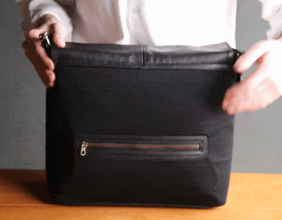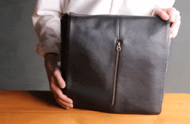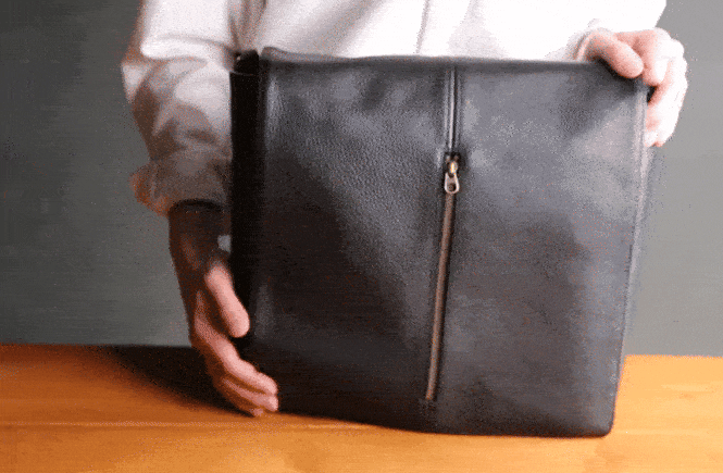 逆に、デスクの上でフラップを開けた状態でも、横にずらすことなくそのまま手を差し込める。持つ人の動きに寄り添う、無駄のないアクセス動線がここに設計されています。