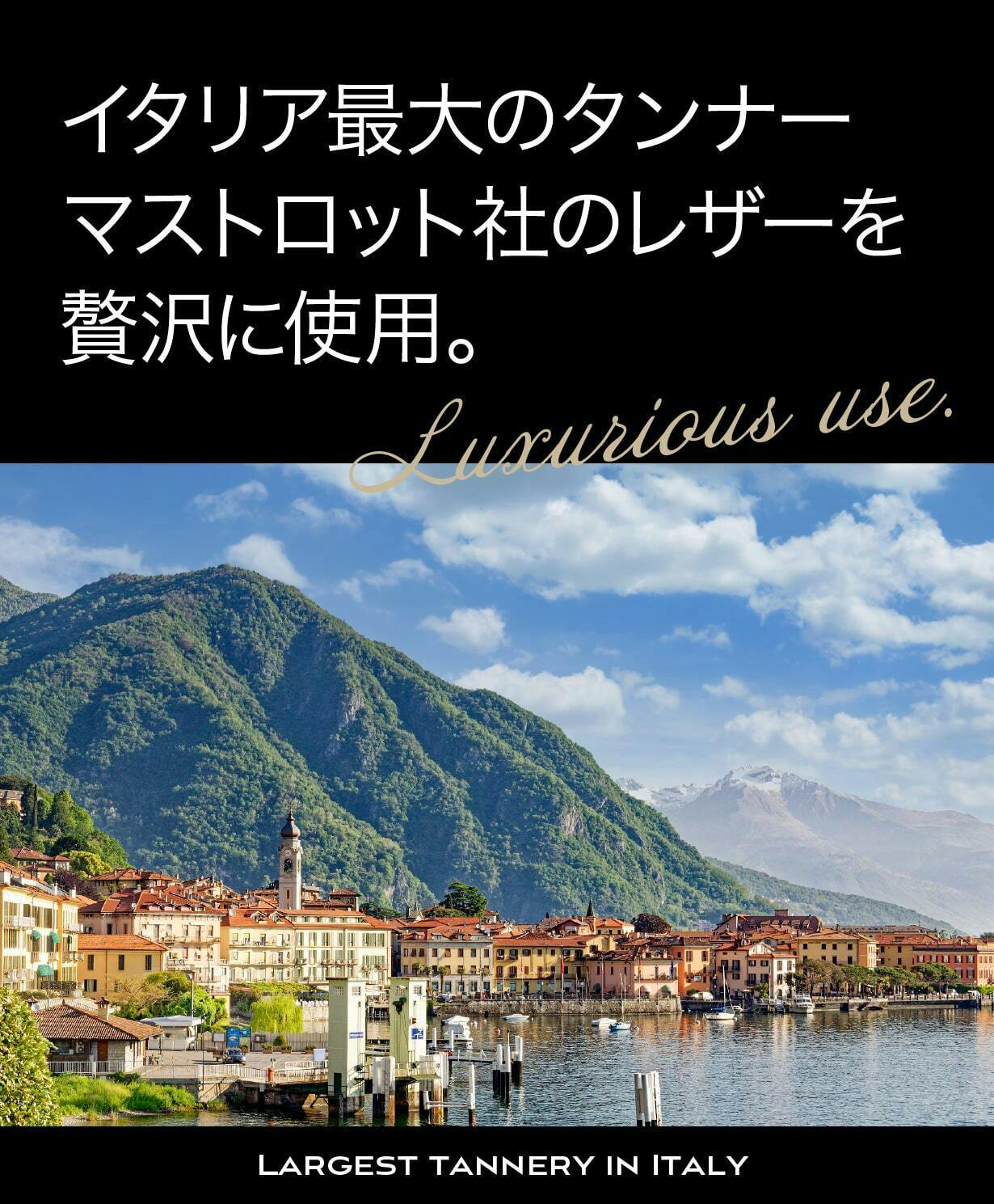 マストロット社は、1958年に創業したイタリア最大級のタンナーのひとつ。長年にわたり培われた技術と革新によって、世界の高級ブランドにも採用されるレザーを生み出し続けています。その特徴は、しなやかな質感と美しい発色。使い込むほどに風合いが増し、経年変化を楽しめるのも魅力のひとつです。