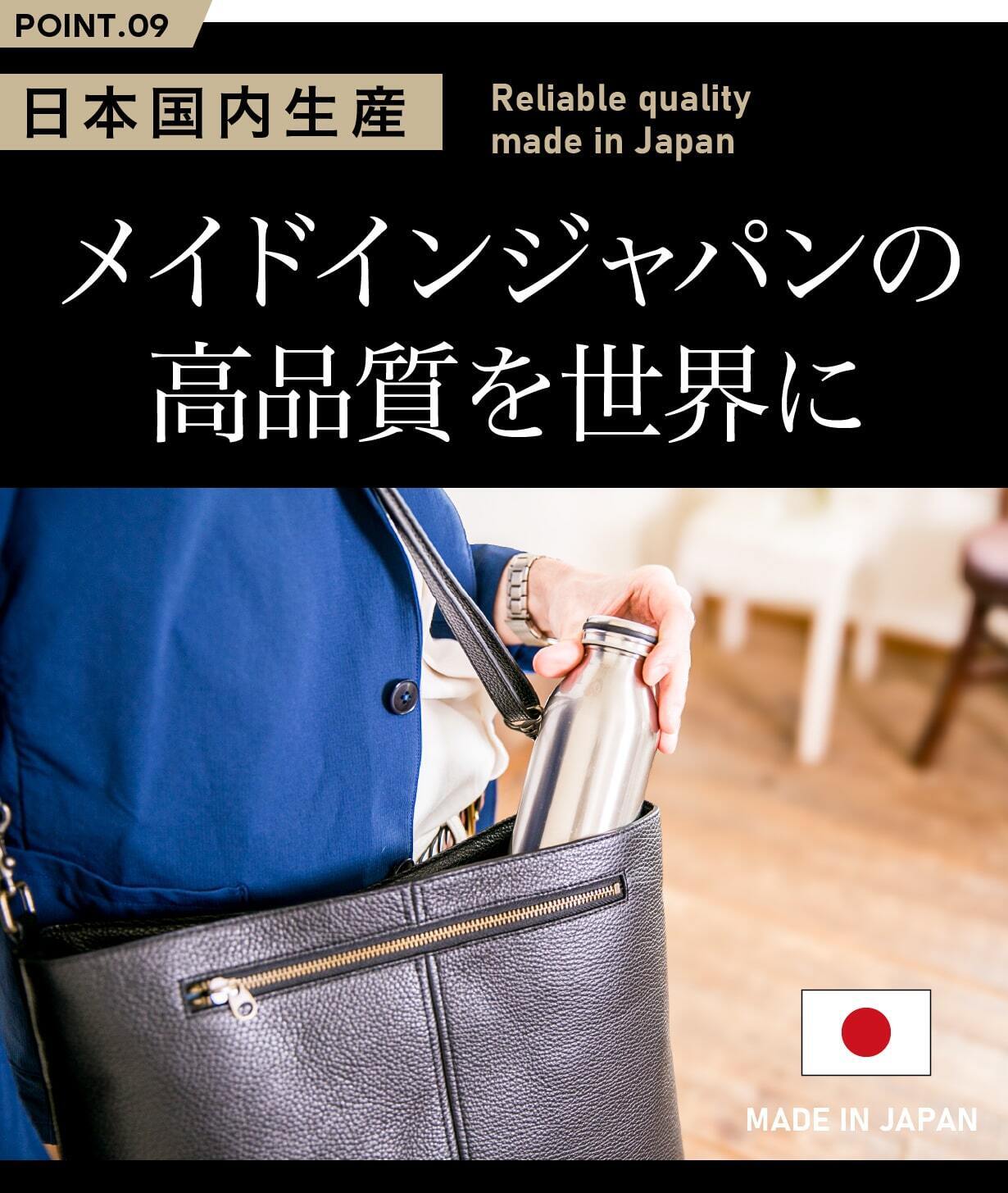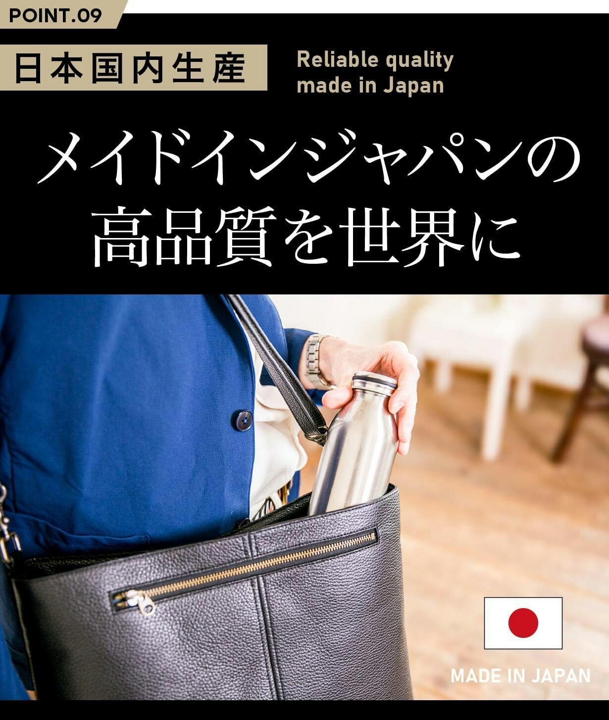 このバッグには、日本のものづくりの誇りが詰まっています。細部まで丁寧に作り込まれた美しさと、実用性を兼ね備えた設計。そして、使い込むほどに馴染み、長く愛用できる品質。私たちは、こうした「本物の品質」をより多くの人に届けたいと考えています。メイドインジャパンの確かな技術が生み出すバッグを通じて、ものを大切に使う喜びを感じてもらいたい。そんな想いを込めて、一つひとつのプロダクトをお届けします。