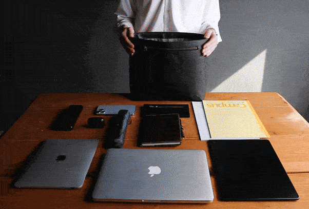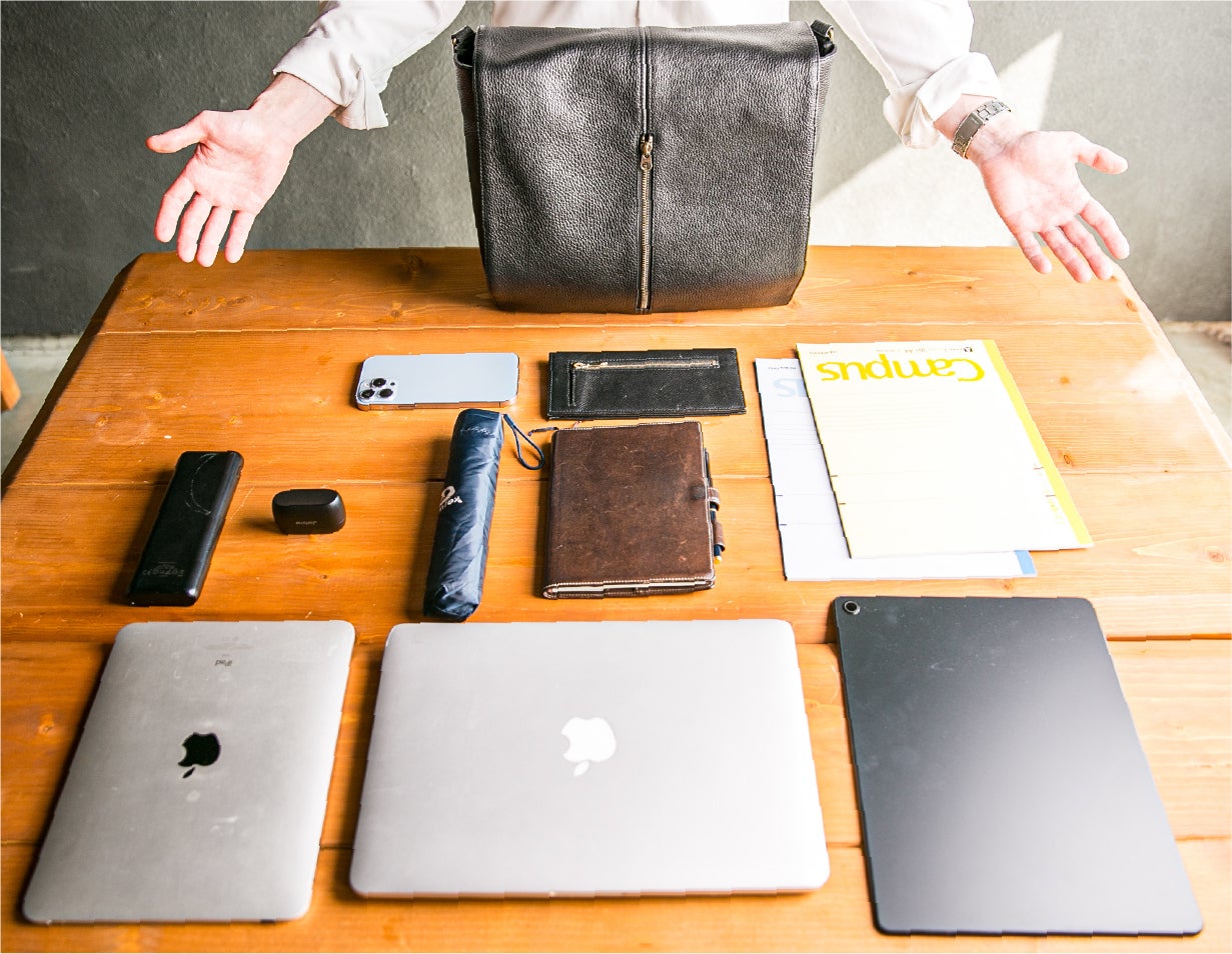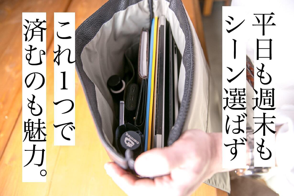 バッグを肩にかけて通勤し、パソコンや書類、ガジェットを入れ、移動し、打ち合わせをこなし、また移動する──