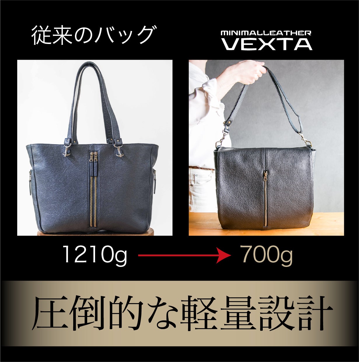 VEXTAは、大人のバッグの新しい基準をつくる軽量革バッグです。