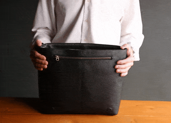 しかも、この軽さを実現しているのは、薄くて強い撥水イタリアンレザーと、無駄を削ぎ落とした設計の賜物。ただ「軽いだけ」ではなく、「持ち物に対する構造の最適化」によって生まれた軽量性なので、収納力や耐久性に妥協は一切ありません。
