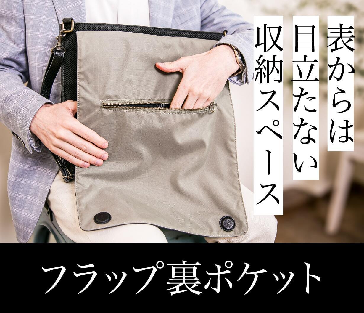 さらに、ポケットがフラップの裏に隠れる構造のため、外からは見えず、持ち物の視認性も低いため、セキュリティ面でも安心感があるのも大きな魅力。