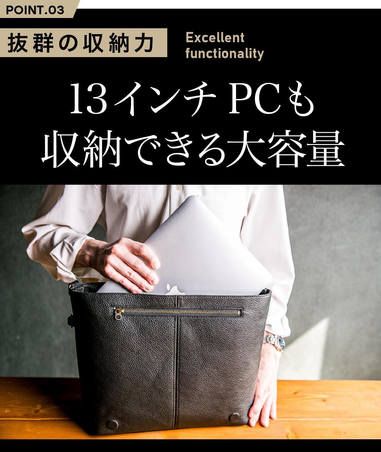 20代の若手ビジネスパーソンから、ミドル世代、さらにはリタイア後のライフスタイルバッグとしても活用できる、時代とライフステージを問わないデザイン性を備えています。
