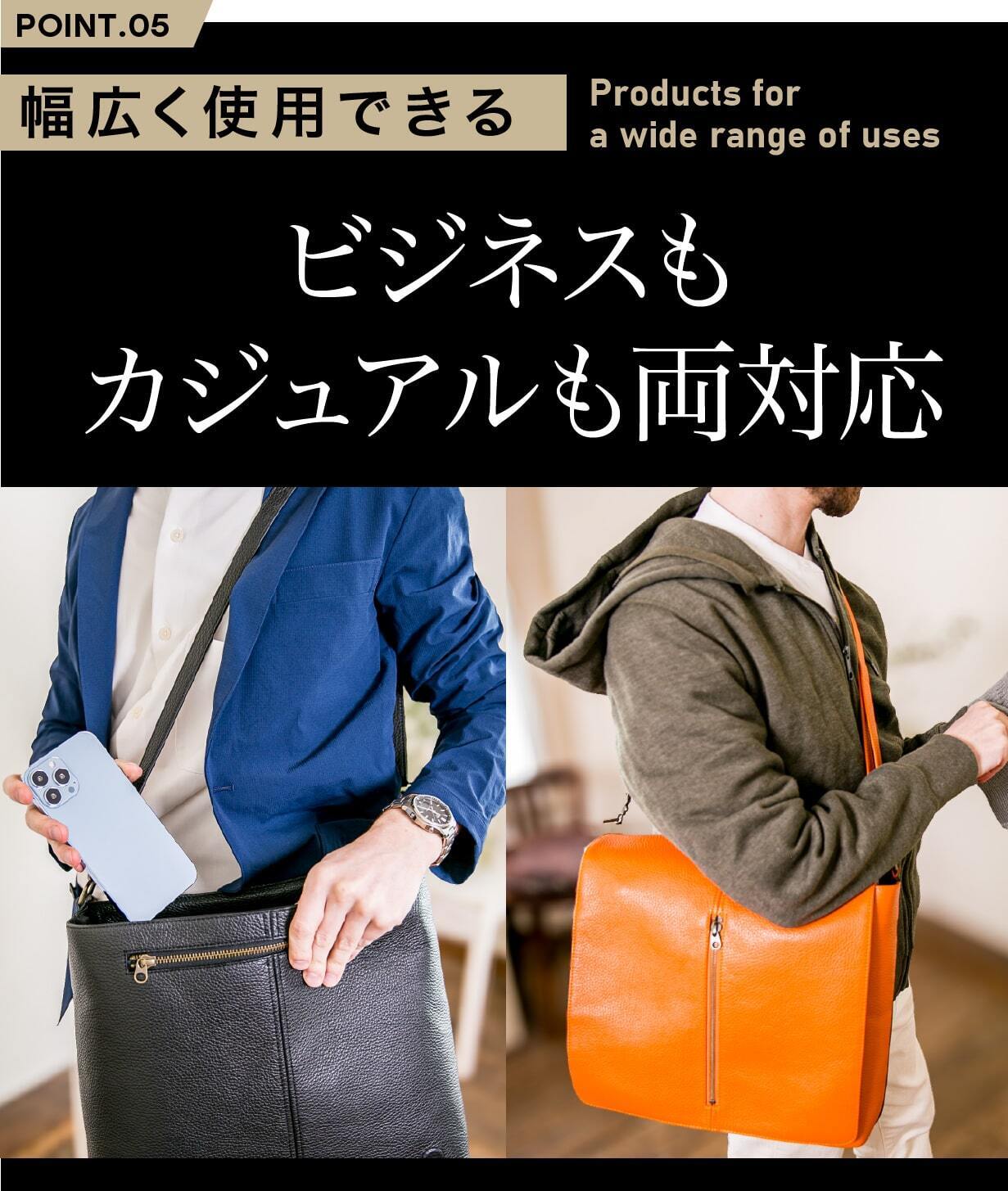 ビジネスシーンや旅行中など、人目が気になる場面でも、重要なアイテムを自然に持ち運べるため、安心感とスマートさを同時に得ることができるのです。