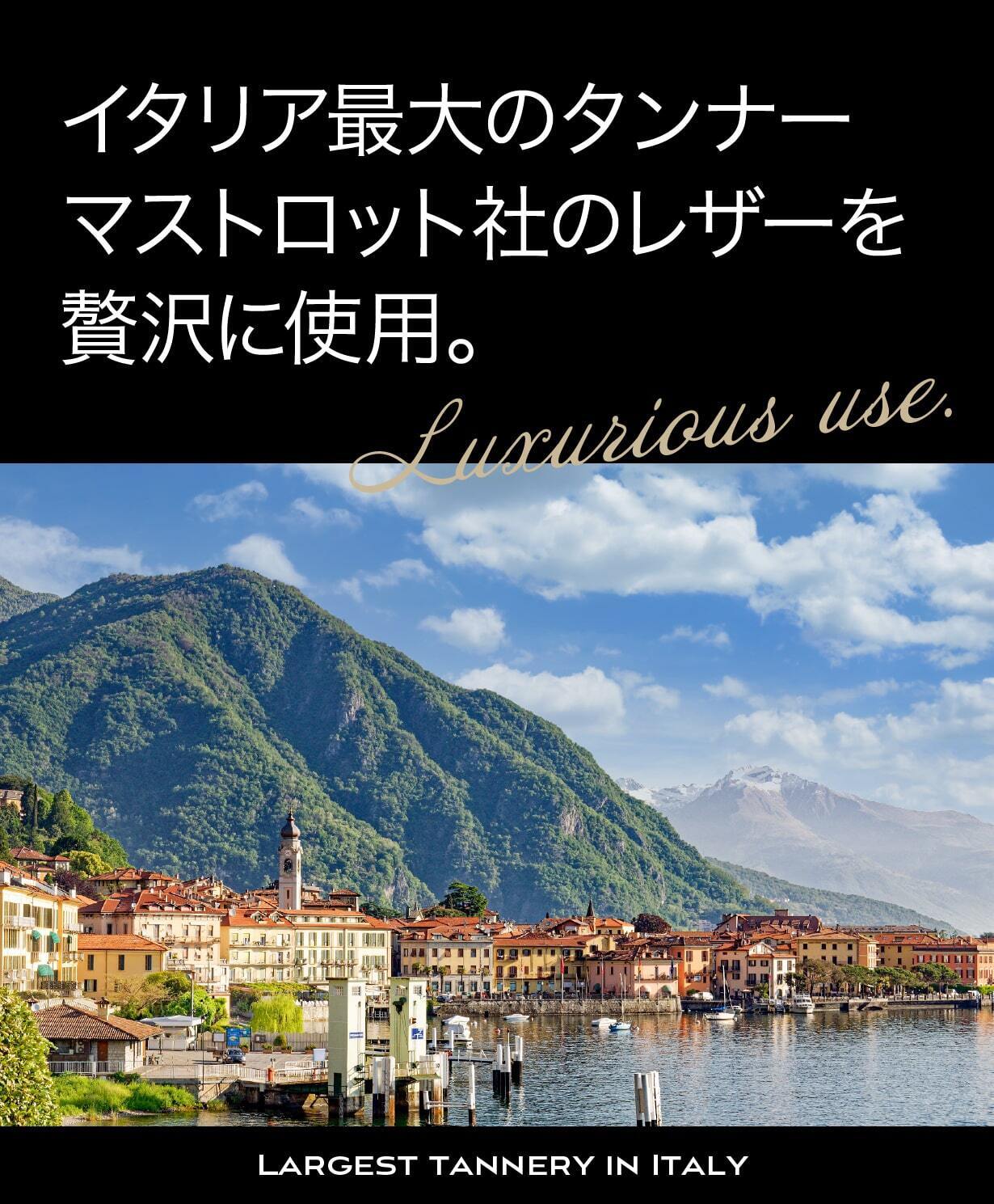 イタリアの伝統と技術が息づくハイクオリティなイタリアンレザーを使用しています。このレザーは、多くのイタリア高級ブランドでも採用されていることで知られ、世界中の目の肥えた愛用者たちを魅了してやみません。