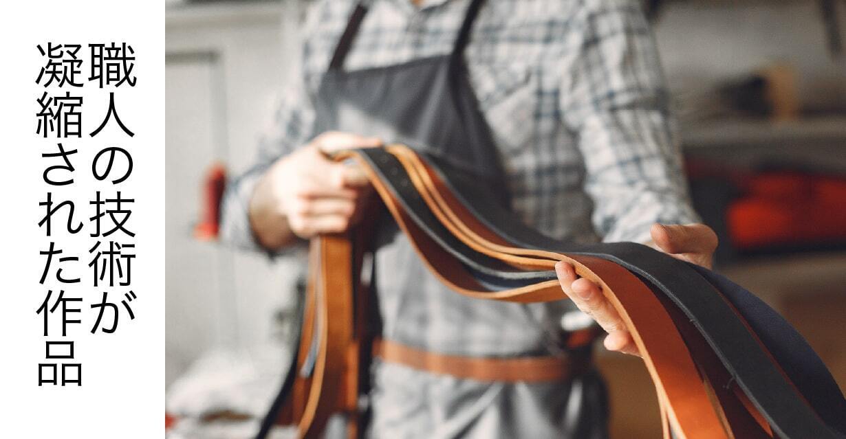 レザーは天然素材ならではの独自の風合いを持ち、使い込むほどに味わい深く変化していきます。時間が経つほどに輝きを増し、持つ人の個性とともに進化するレザーの魅力。それが「一生モノ」の証です。