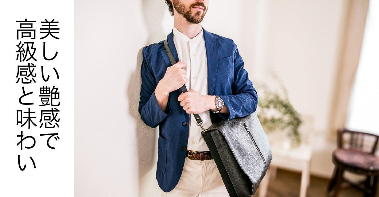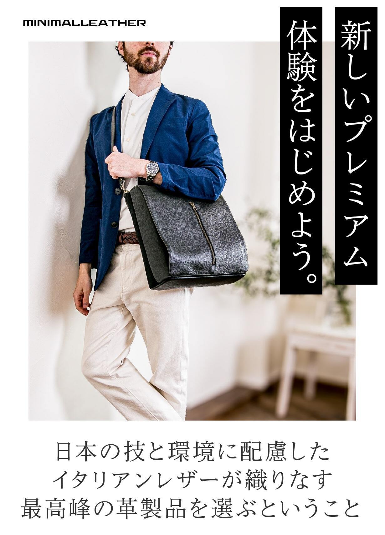 持つだけで圧倒的な存在感を放つのが、イタリアンレザーの魅力です。華美ではなく、自然体で上質さを感じさせる佇まいが、ビジネスでもプライベートでも活躍します。