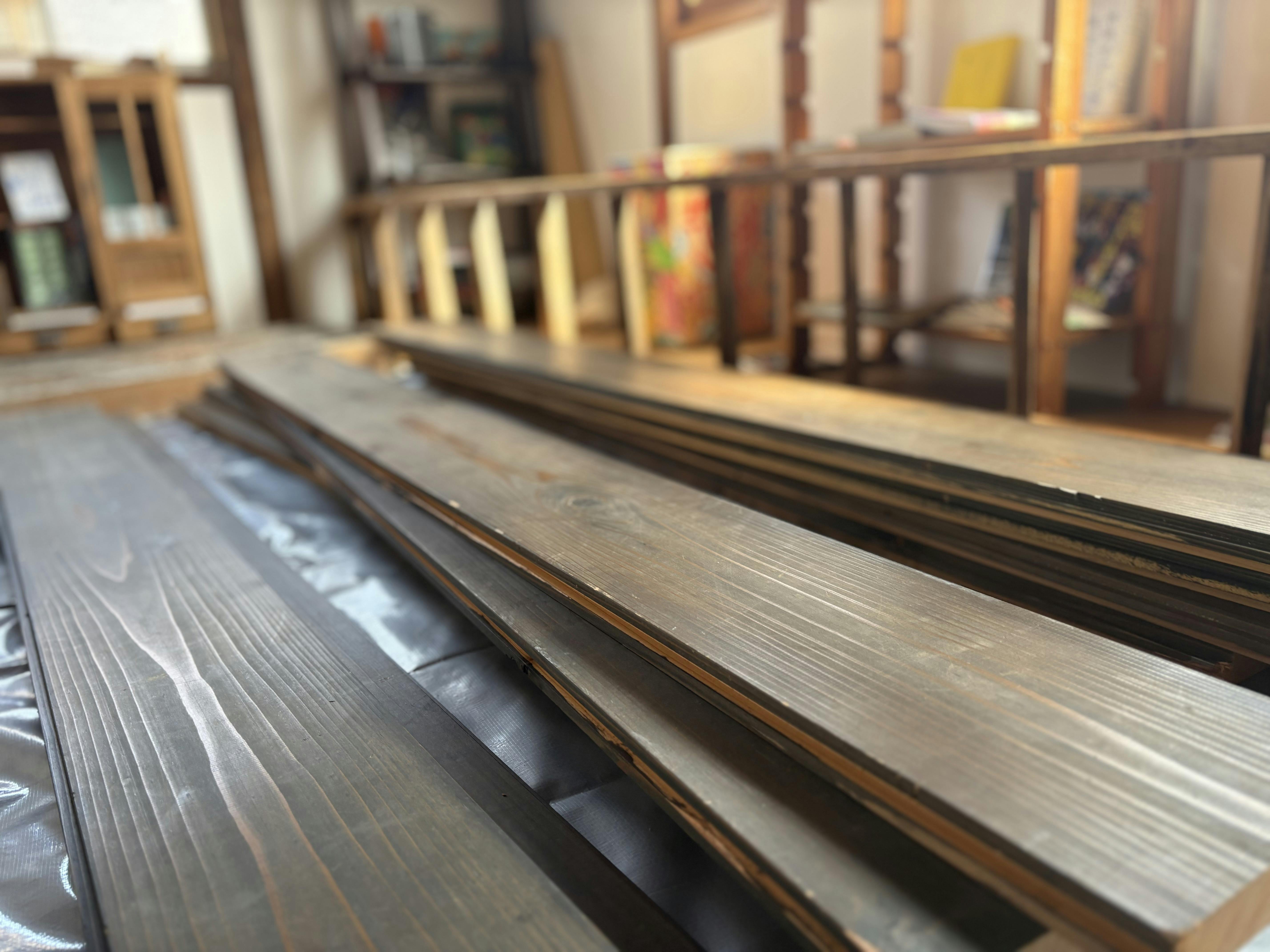 日当たりの良い場所で使われていた床材は、日焼けして色が褪せていたりもして……そんな「時間の跡」もまた、魅力のひとつです。