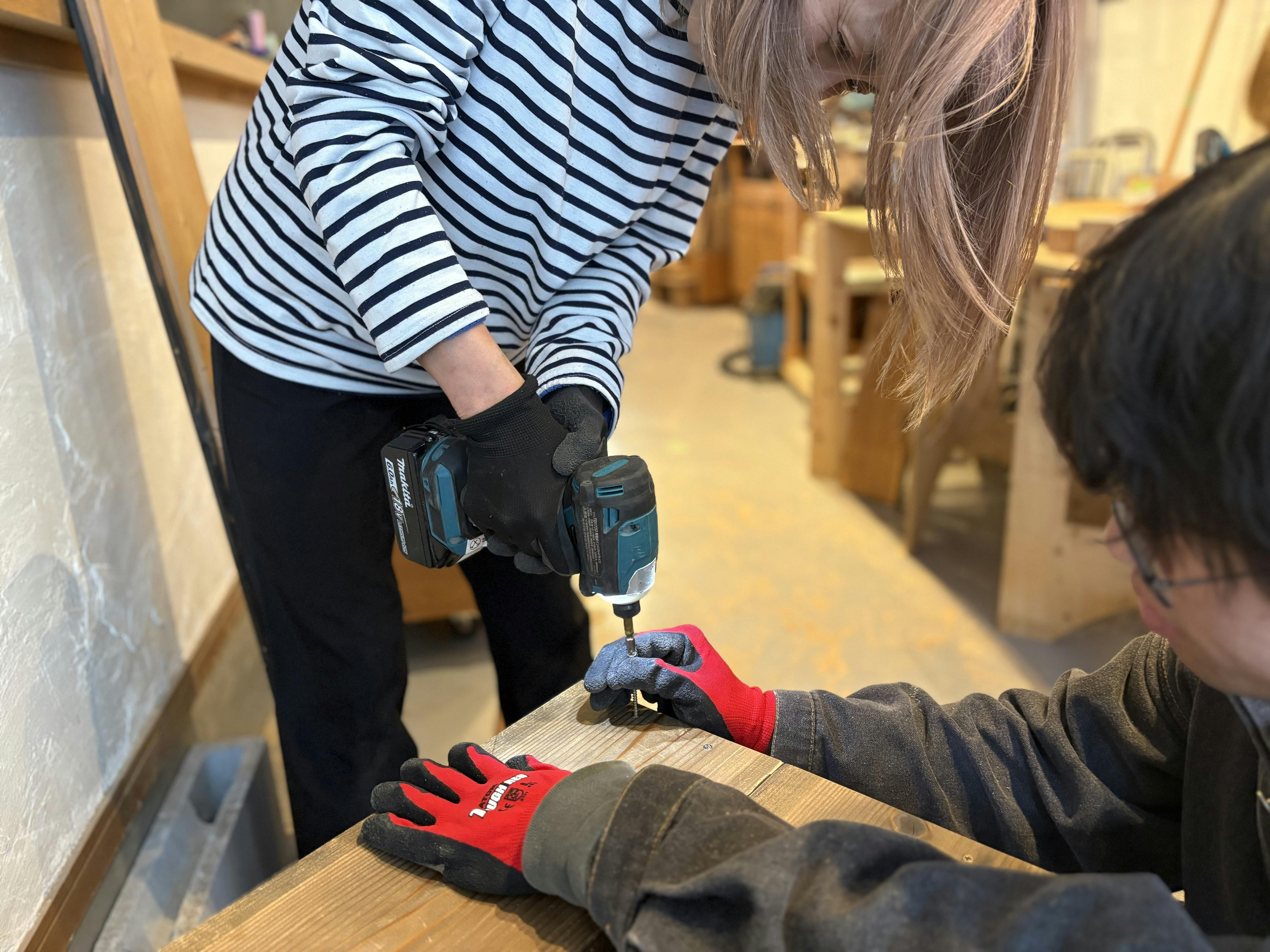 木材を切ったり、組み立てたり、磨いたり。