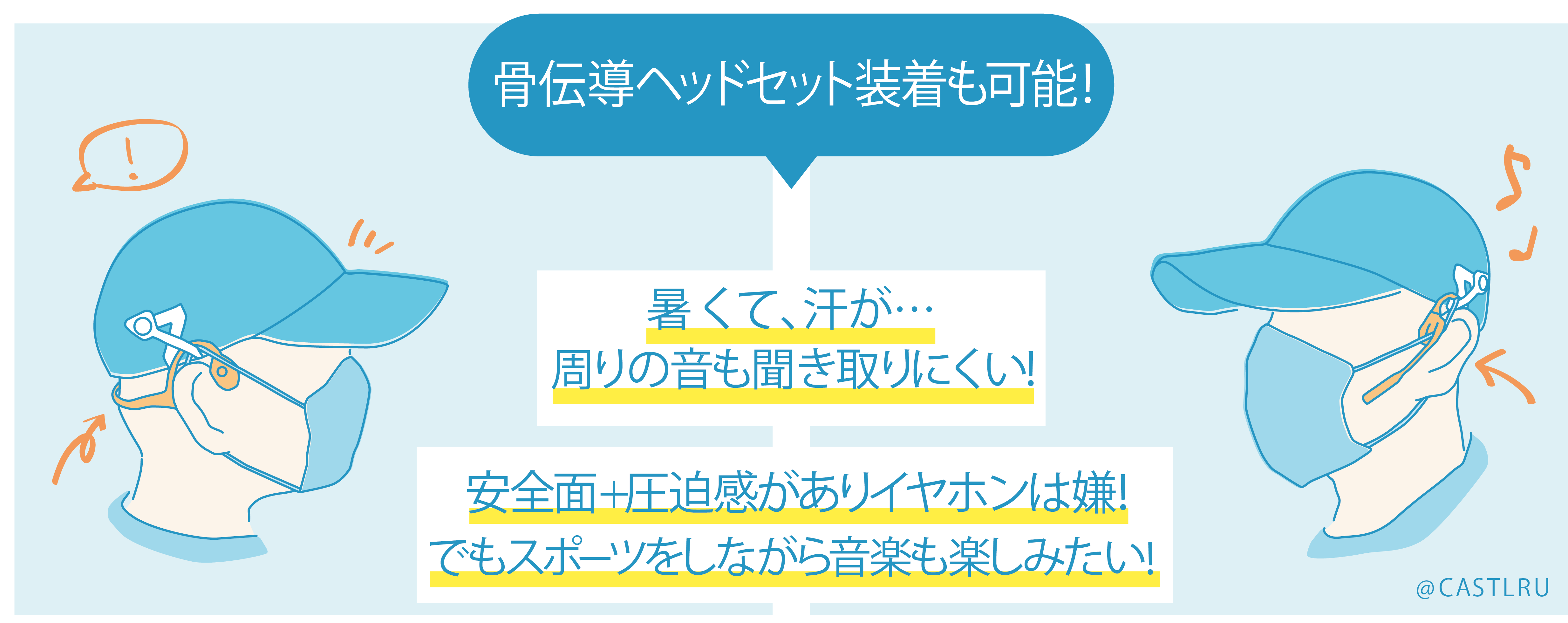 暑くて、汗が、周りの音も聞きづらい、、、それに圧迫感もありイヤホンは嫌だ!