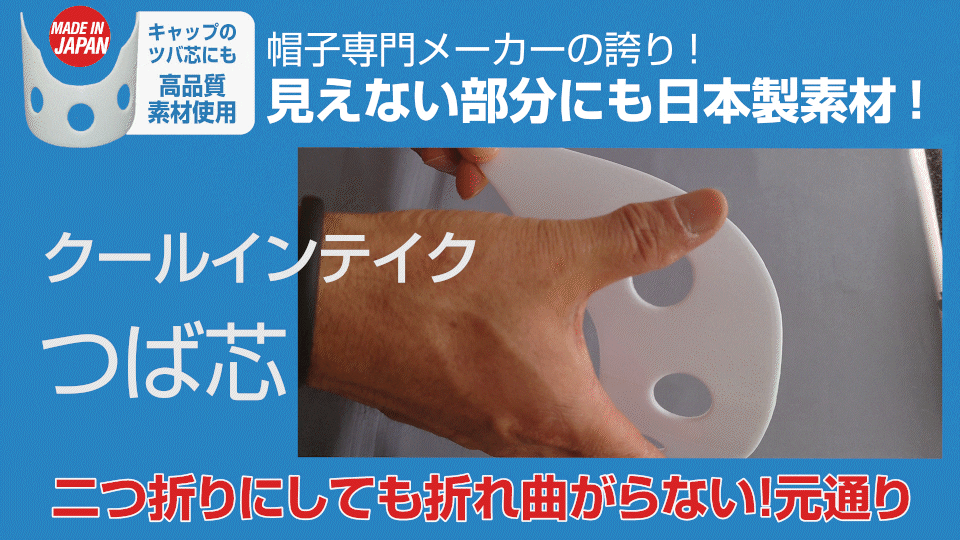 メーカーの誇り!外部から見えないツバ芯も日本製。 このツバ芯に通気孔を開け、軽量化! 加えて長時間の着用でも額への圧迫感を軽減する独自のツバ構造!