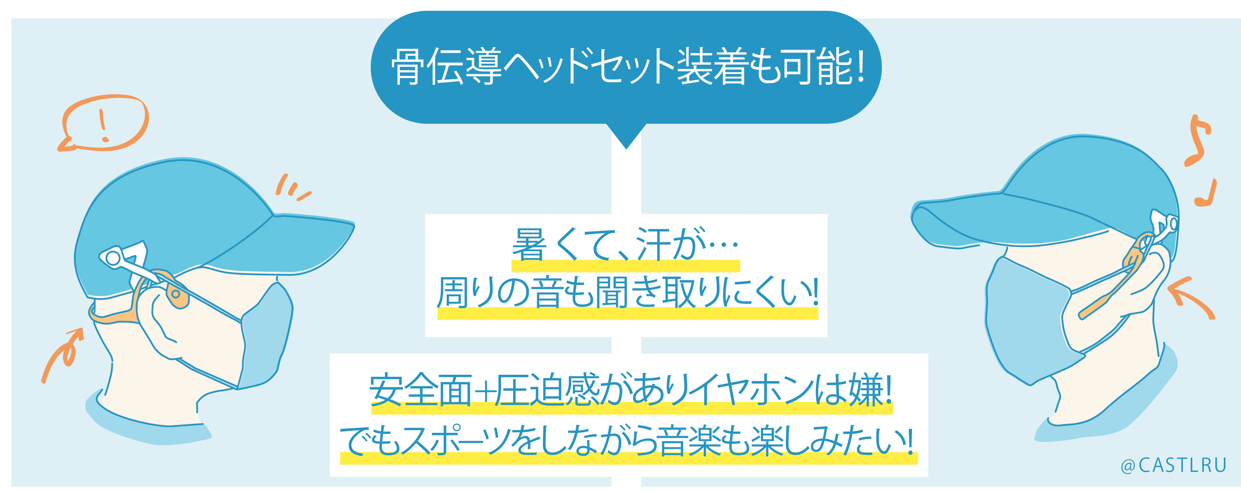 昨年に引き続き今年も「暑い夏」との長期予報が既に出されています。私自身もGWから秋にかけて、運動時に顔の「汗」「テカリ」「化粧崩れ(UVクリーム含む)」に困っており、パフォーマンスも落ちてしまいがちです。本企画は「顔の表面温度」を下げることが実証された業界初の特許構造のキャップです。またマスク環境下やサングラスを必要とする炎天下では耳への負担も大きく収納場所にも困ってしまいます。そして音楽を楽しむためのワイヤレスイヤホンも暑く、汗で汚れてしまう上に、周りの音も聞き取りにくく、私はヘッドセットを愛用しています。本企画の「マルチホルダー」が、これら3つを同時装着可能にしています。「暑さ対策」+「スポーツに集中できる環境」を目指してプロジェクト終了に向けて何度か試着しながらよいよい商品をお届けできるように努めて参ります。