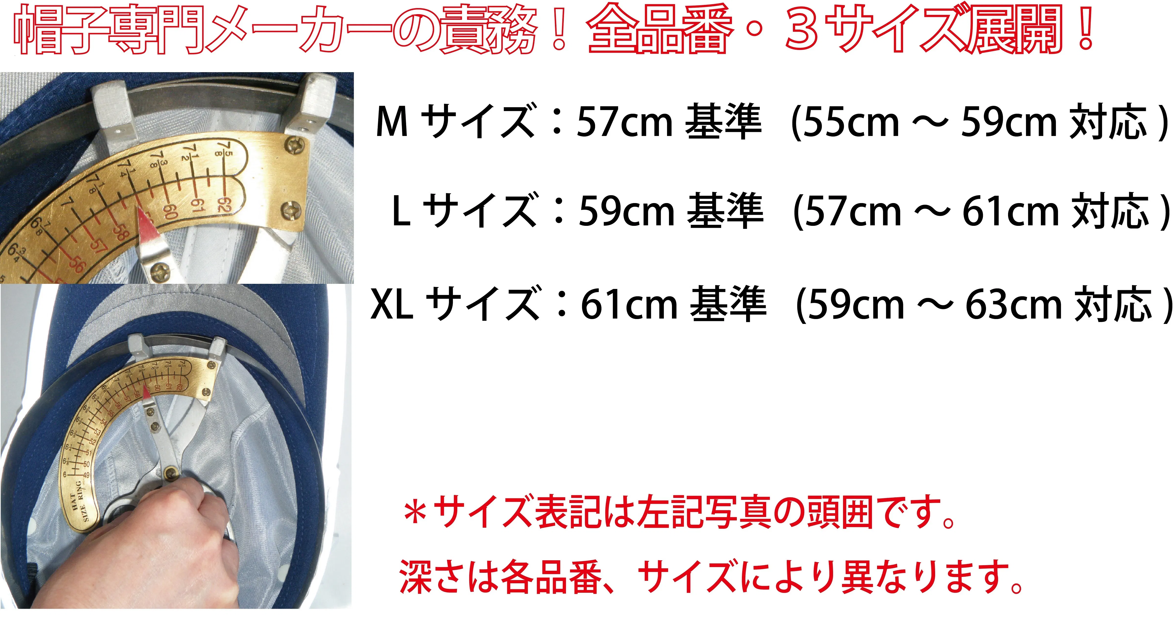 帽子メーカーの責務、全品番・3サイズ展開。