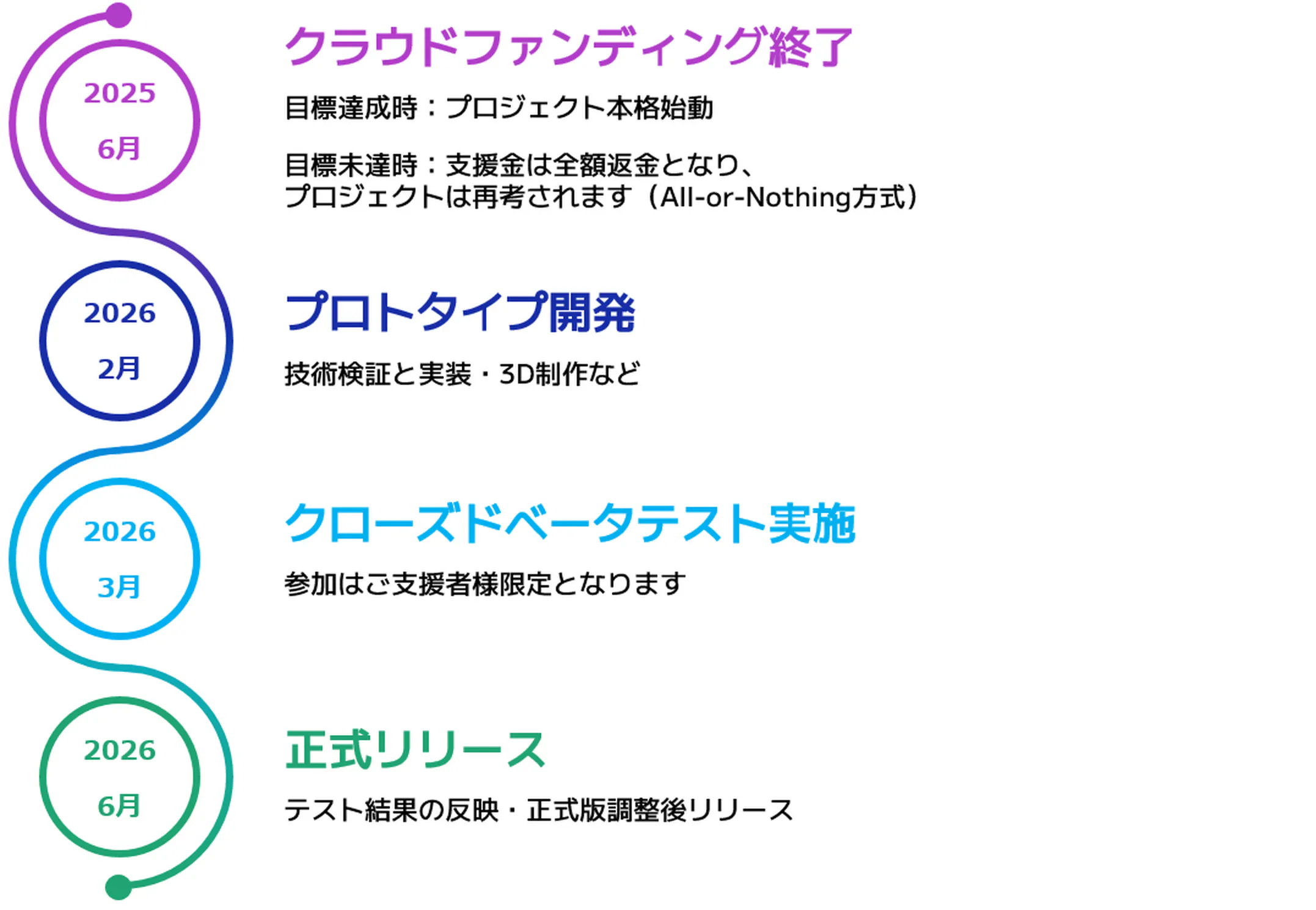 資金調達の達成度に応じて、機能を段階的に拡張していきます。