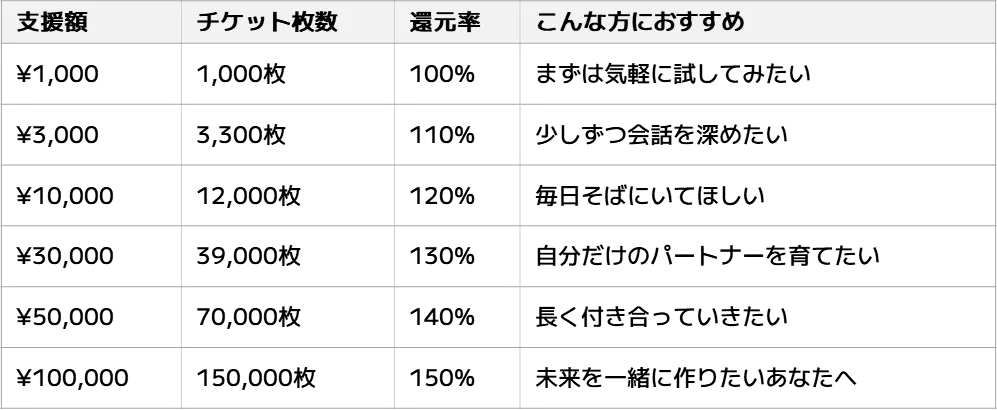🎫 支援額に応じたチケット付与
