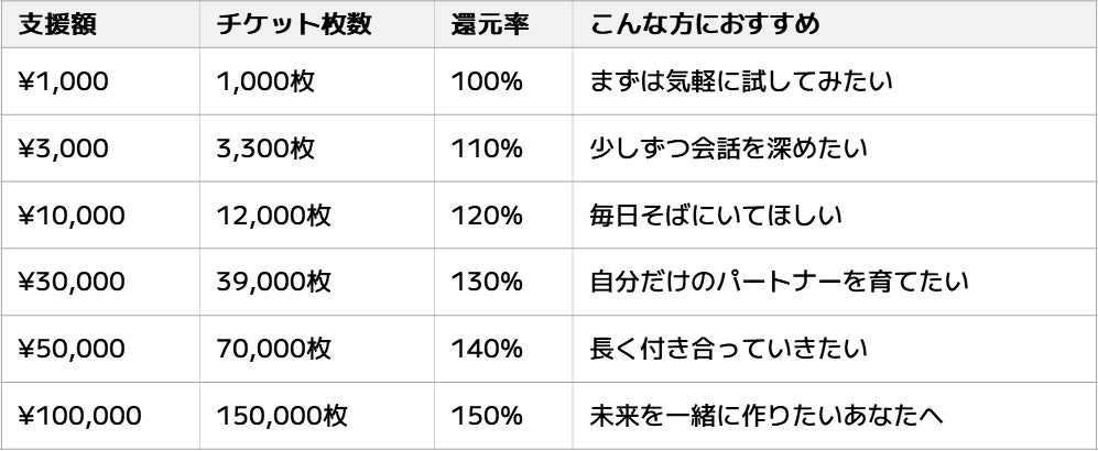 ※複数口の支援も、合計金額に応じたチケット数として反映されます。