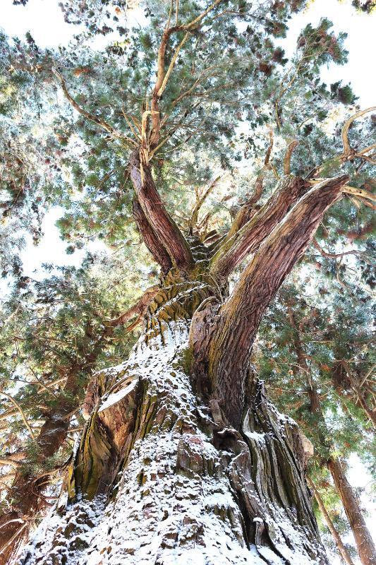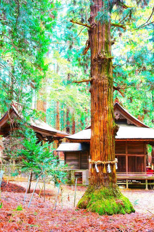 主祭神と相殿神を始め、鎮座した諸神を見守るかのように、本殿・拝殿・摂社・末社を取り囲み鎮座する、八戸市文化財天然記念物「昇龍鉾杉』と『九頭龍鉾杉』・ヒノキの巨樹・不滅のイチイの樹・モミの木巨樹をはじめ、一千本の大きな杉木立が広大る神域です。平安が息づく、精霊たちの杜を体感したご参拝者たちは、誰もが癒され、感銘致します。