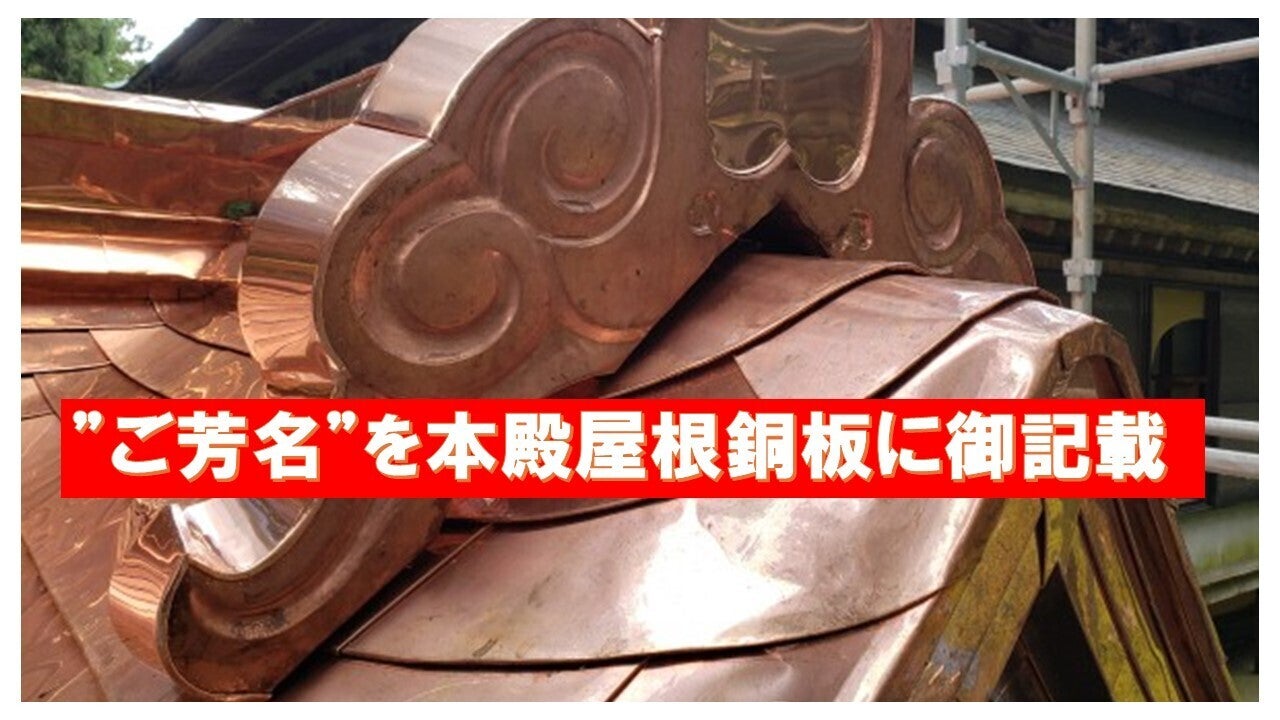 ★「本殿」屋根葺き替え”銅板”に支援者様の『御芳名』をご記載