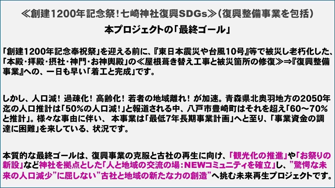 ≪創建1200年記念祭!七崎神社復興SDGs≫とは