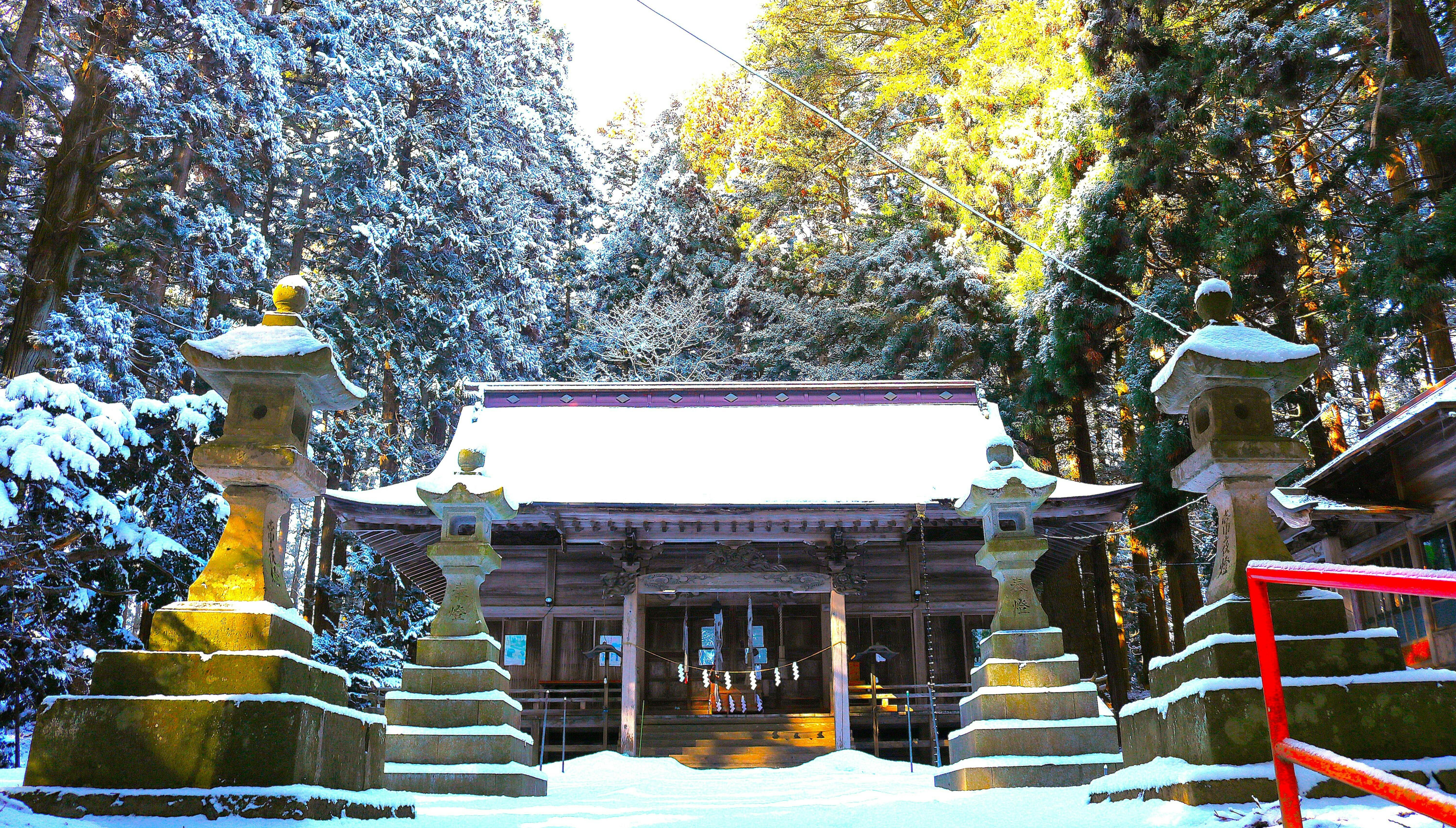 画像:郷社 七崎神社「拝殿」 平安が息づく鎮守の杜にひっそりと佇む拝殿の雪景色(2025年1月)