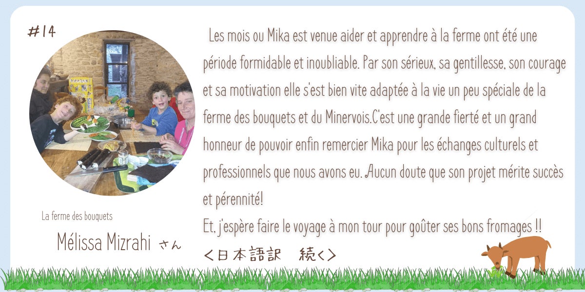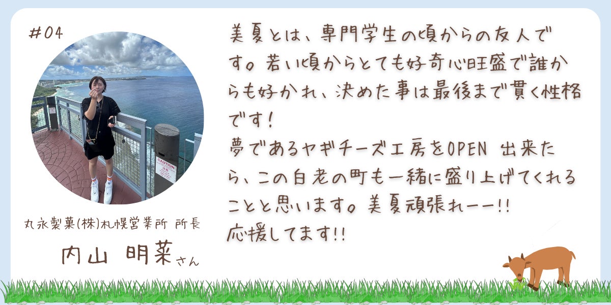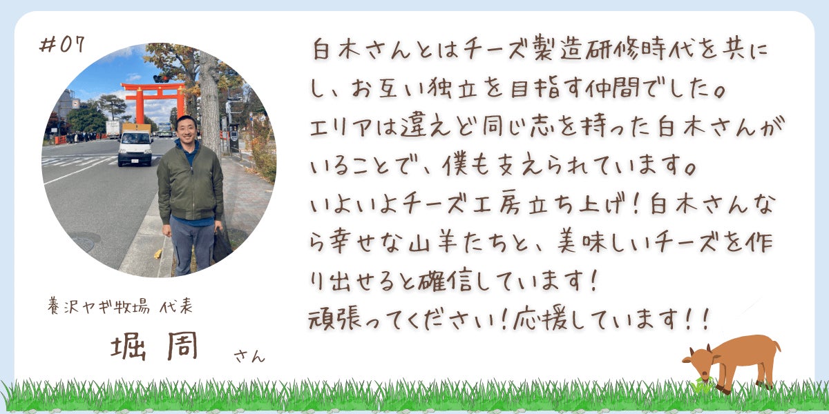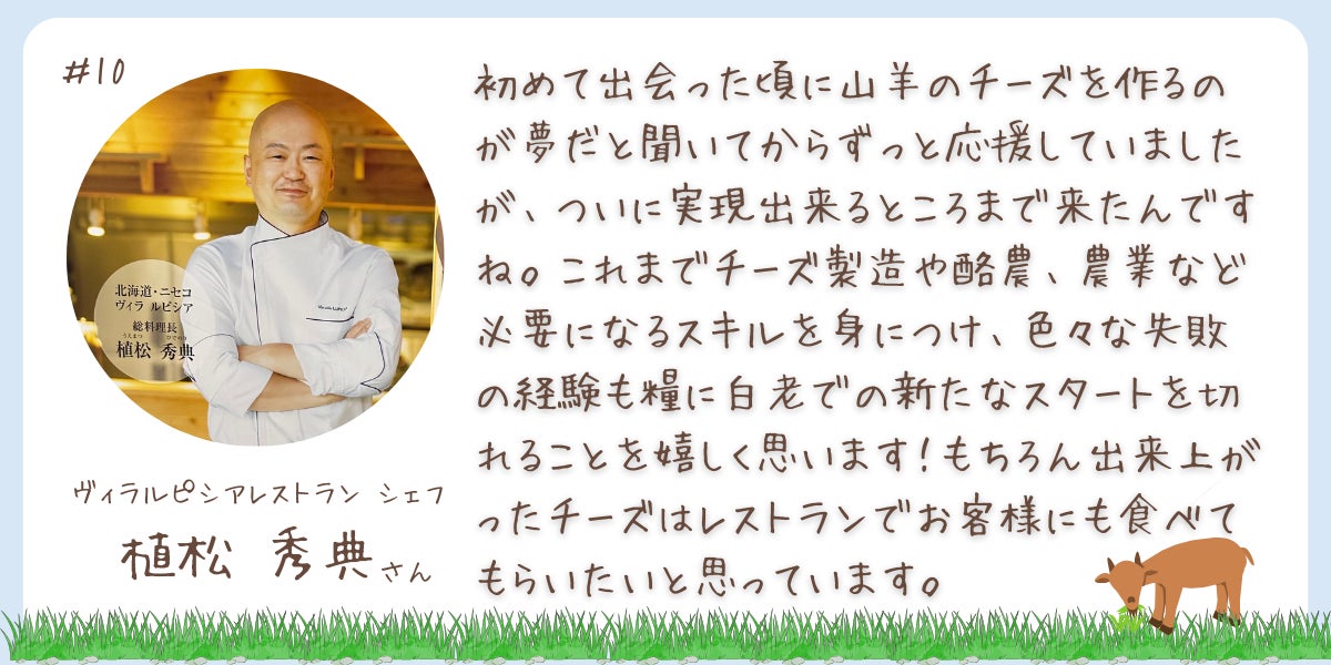 また、皆さんにもっとヤギの魅力、そしてヤギチーズの魅力をお伝え出来ればと思っています。