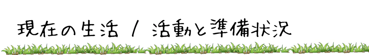 朝ヤギの餌やり、掃除(30分)→ バイト(4時間)→ 自分の土地の整備(草刈り・DIYなど)→ ヤギと散歩→ 餌やり、掃除