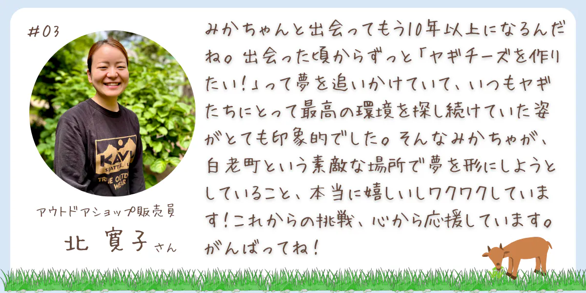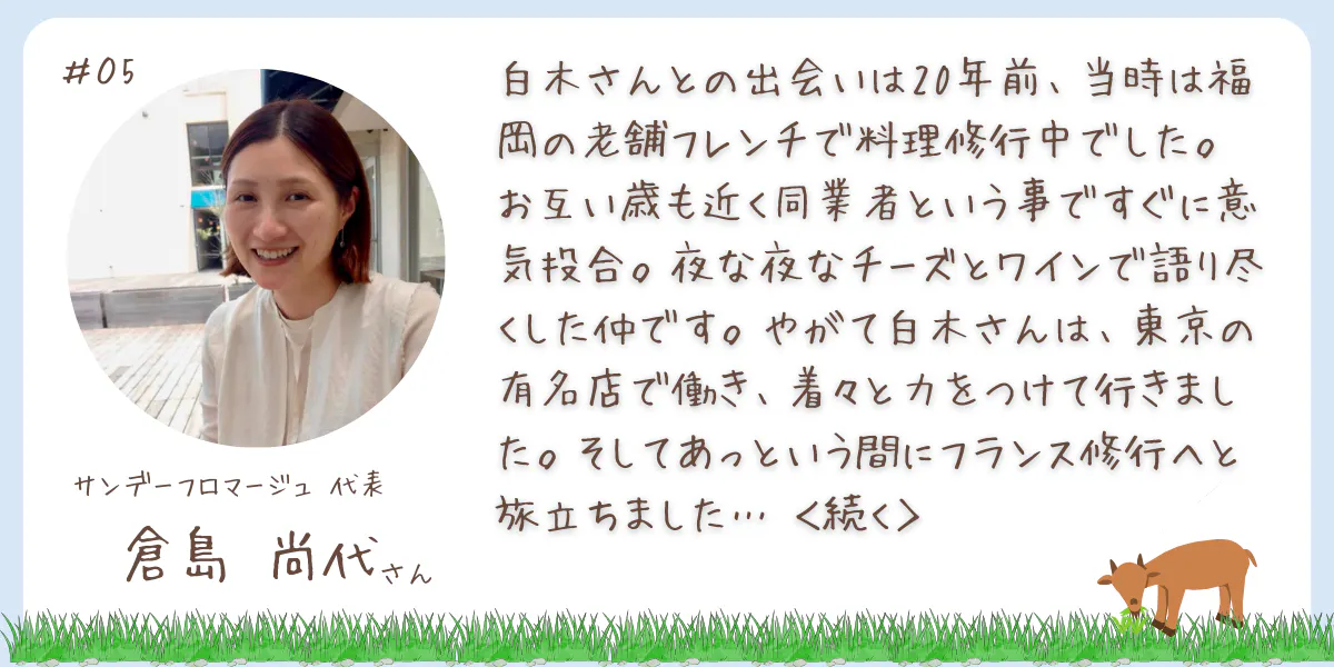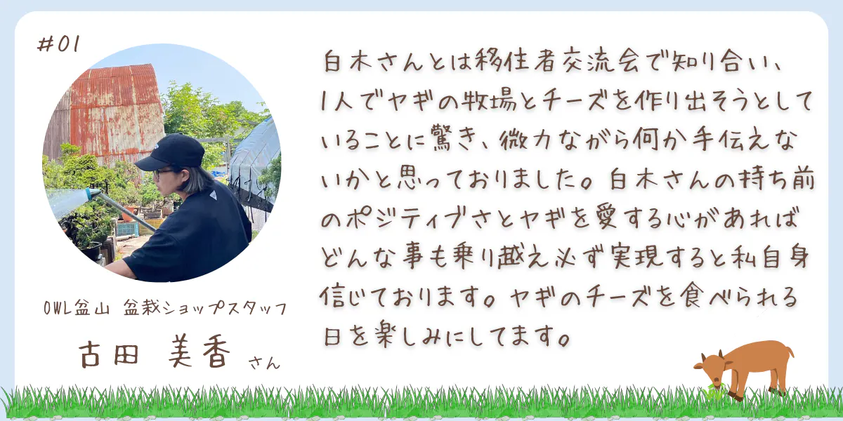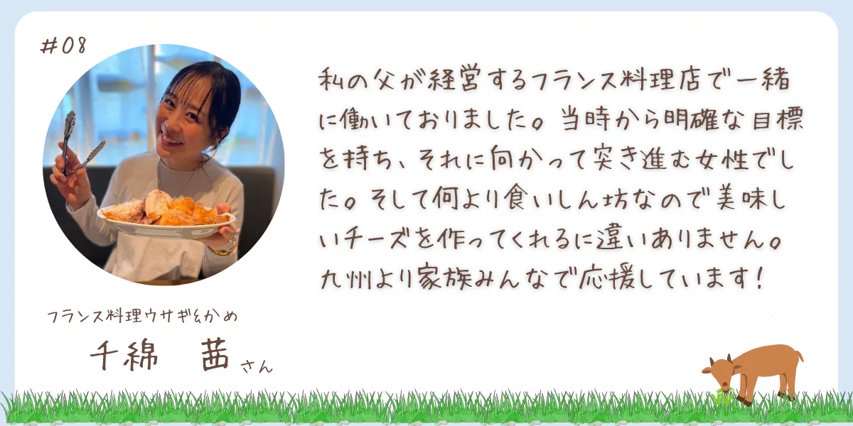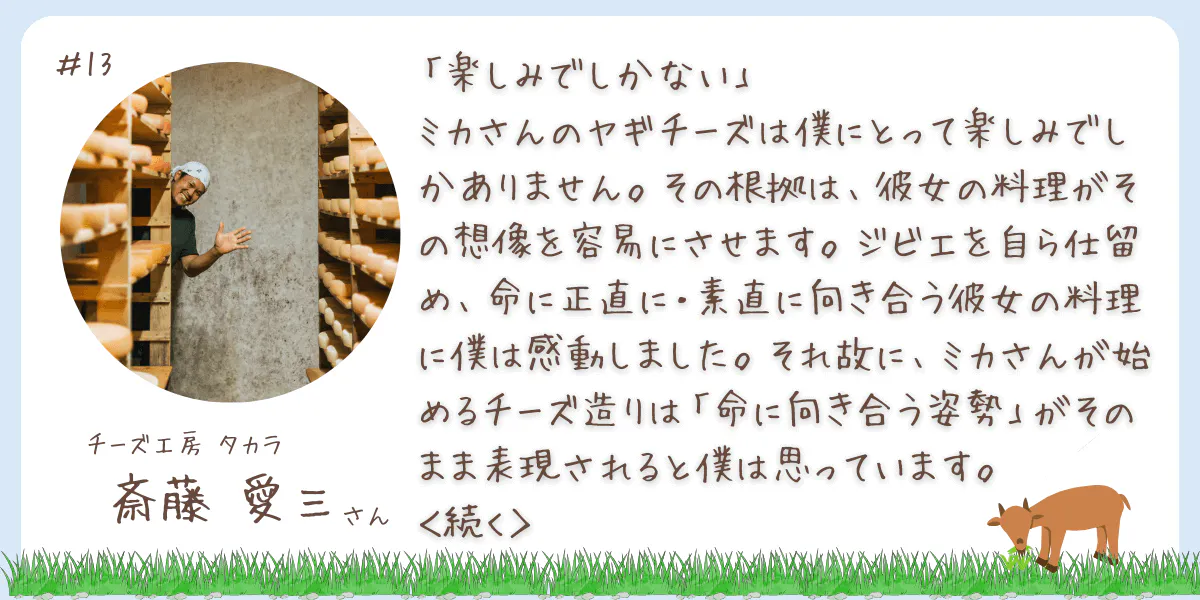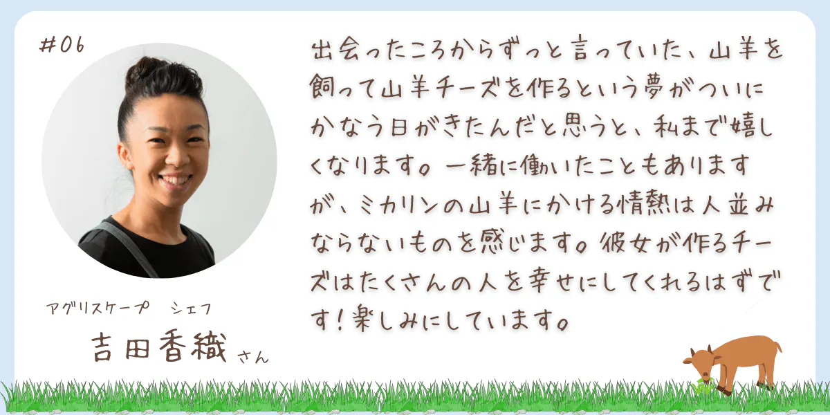 また、皆さんにもっとヤギの魅力、そしてヤギチーズの魅力をお伝え出来ればと思っています。