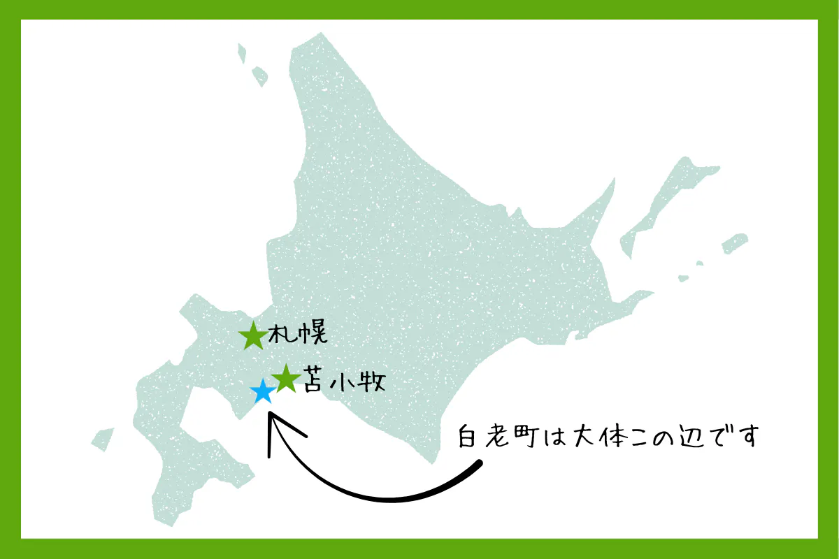 ★ が現在暮らしている「白老町」で、隣の ★ が出身地の苫小牧市です。