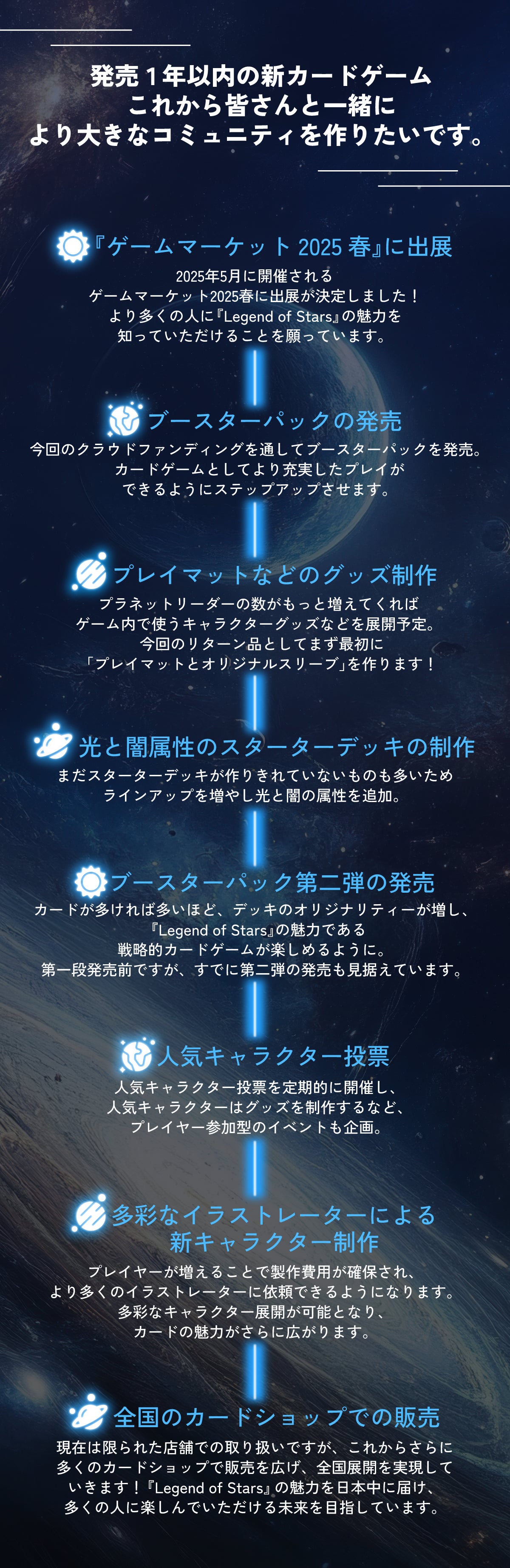 ぜひ、『レジェンド・オブ・スターズ』を楽しみながら、一緒にこのカードゲームを大きくしていきませんか?