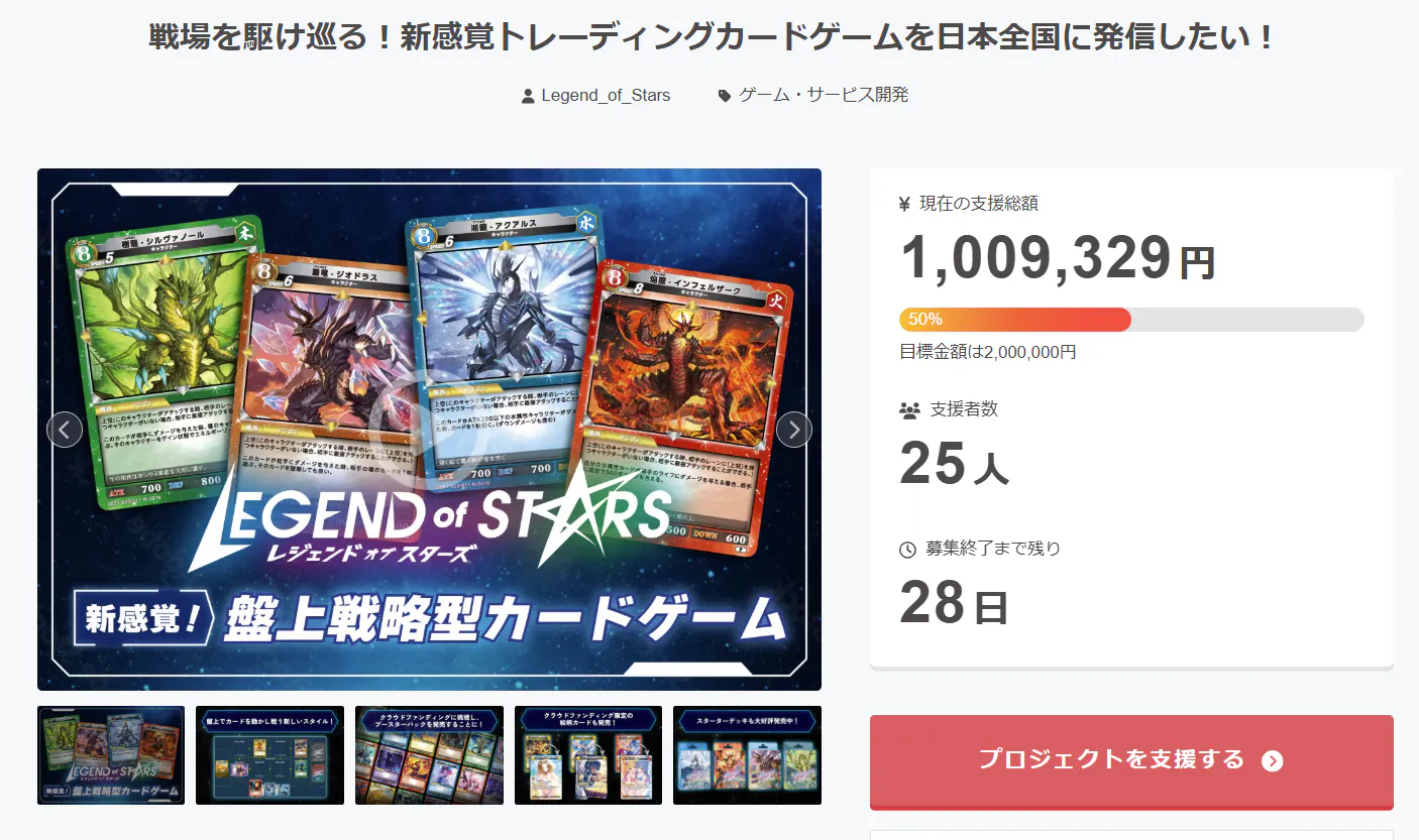 より多くのご支援が集まれば、カードレアリティの向上(キラカード化)、イラストレーター様へのより多くのイラスト発注、大会や新しいキャンペーンなど大きな施策を打つことができるようになり、多くの皆様にゲームの楽しさと奥深さを伝えることができるようになります。