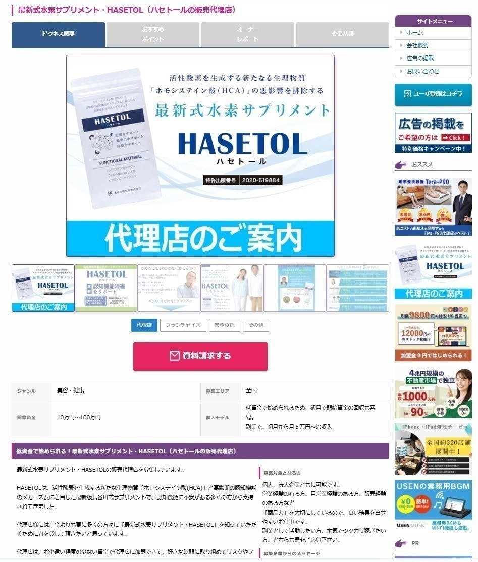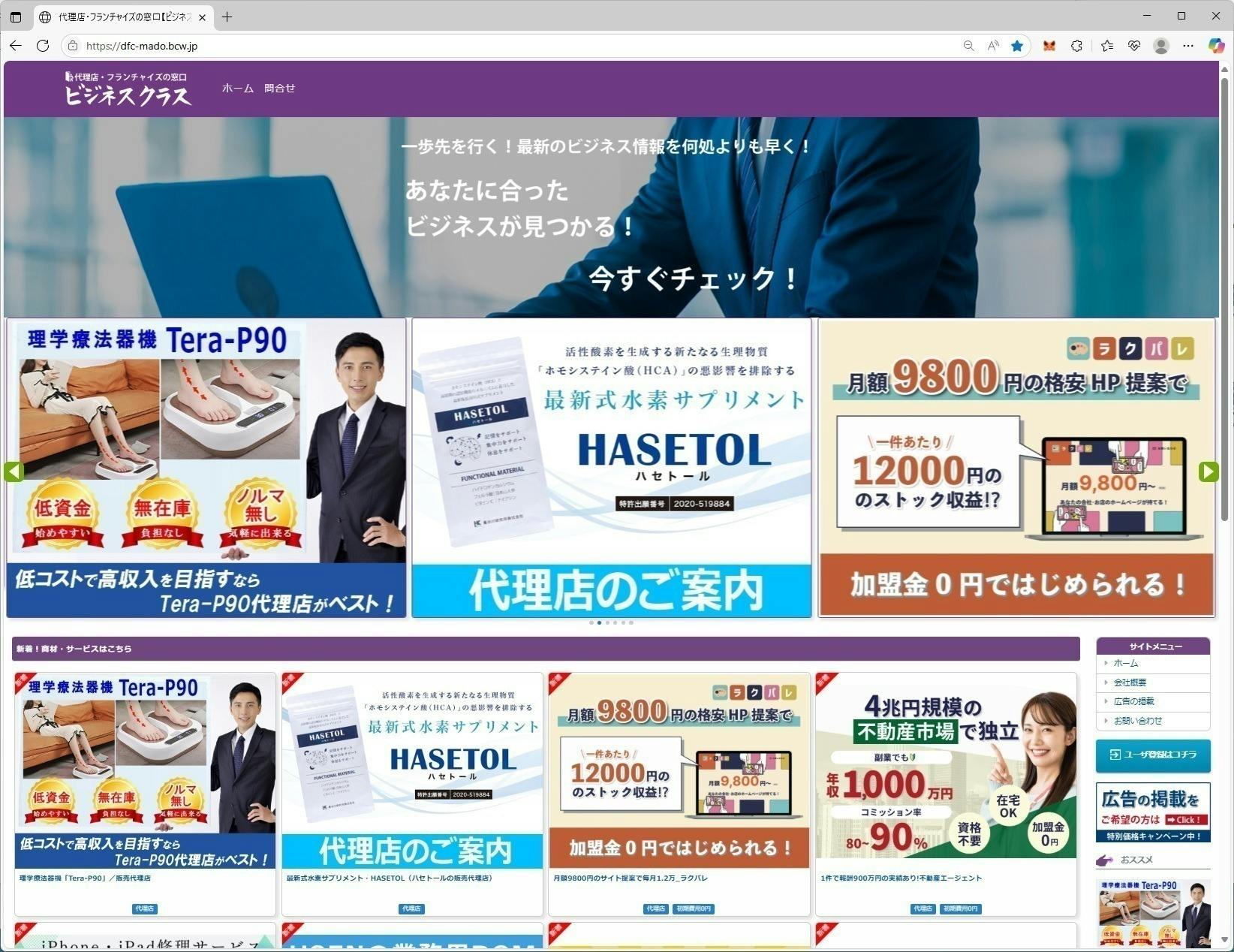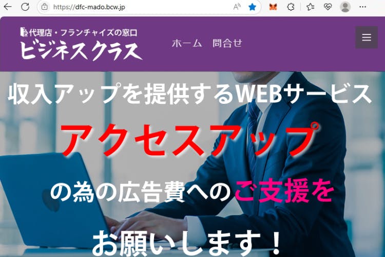 代理店・フランチャイズの窓口【ビジネスクラス】サイトにて、広告掲載の提供をさせていただきます。謝礼ページにて情報掲載(希望者のみ)させて頂きます。