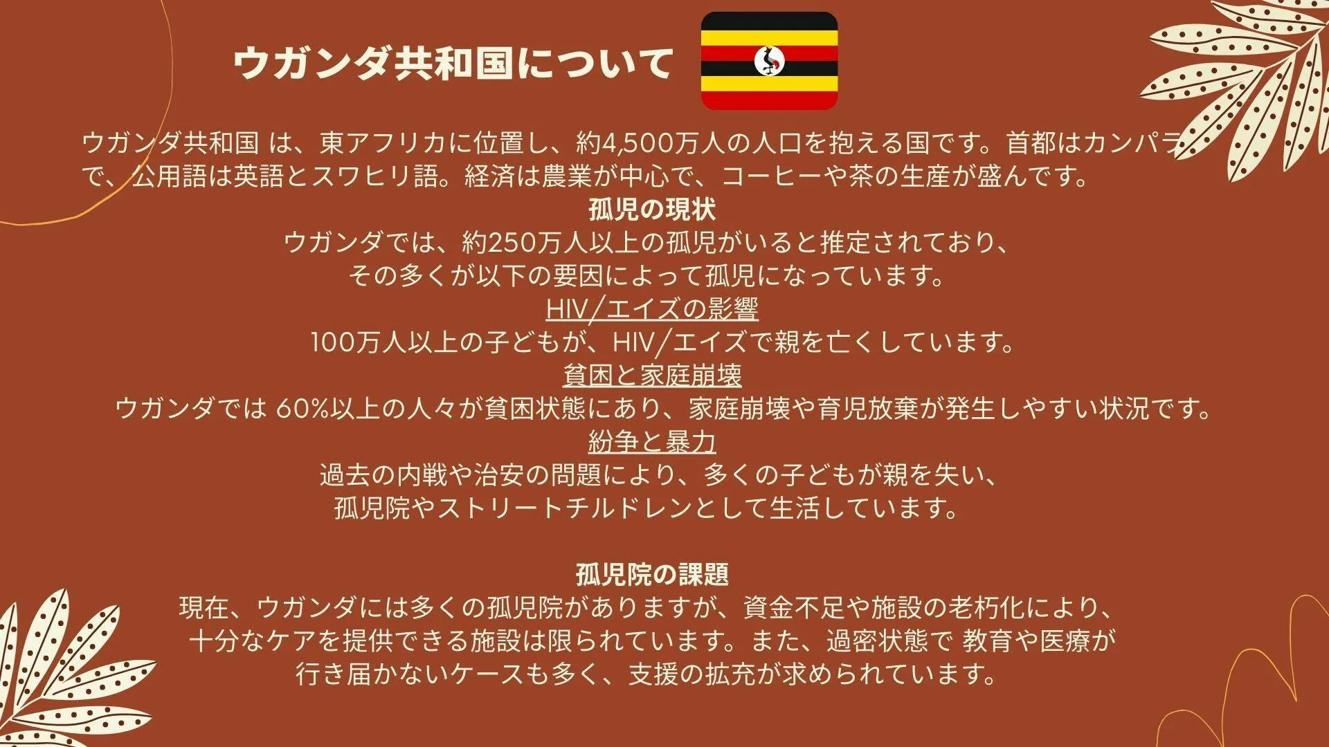 私は今回のプロジェクトにおきましてウガンダの現状を知る者、そして日本とウガンダをつなぐ立場としてこのプロジェクトを進めています。
