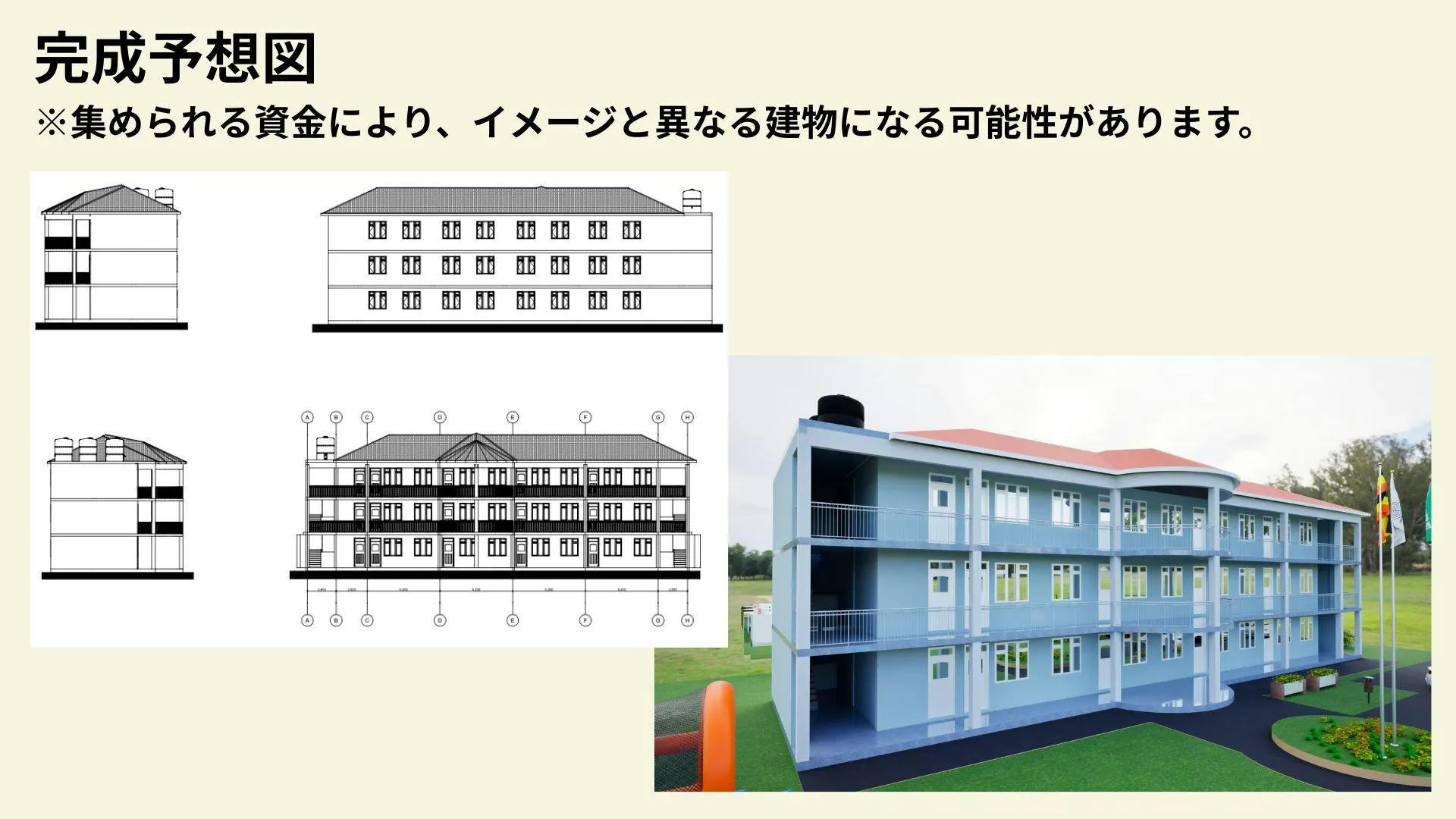私たちの最終目標は、300人の孤児が通うことのできる3階建ての孤児院を建設することです。まずは、今回の資金で2階建ての建設を目指します。