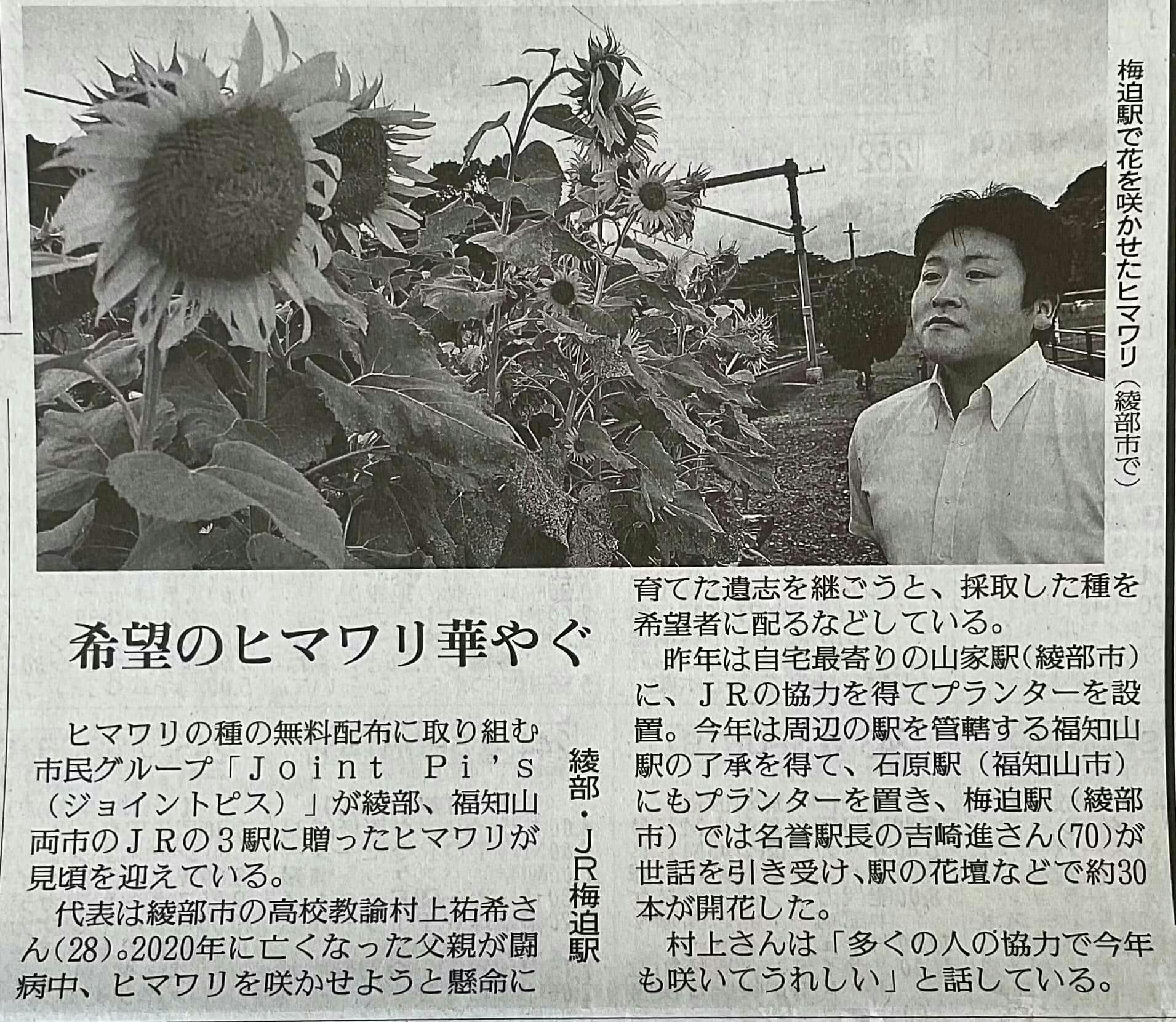 代表の村上が幼少期に住んでいた際のご近所さんであるJR梅迫駅・名誉駅長である吉崎様にご協力いただきひまわりを植えさせていただきました!