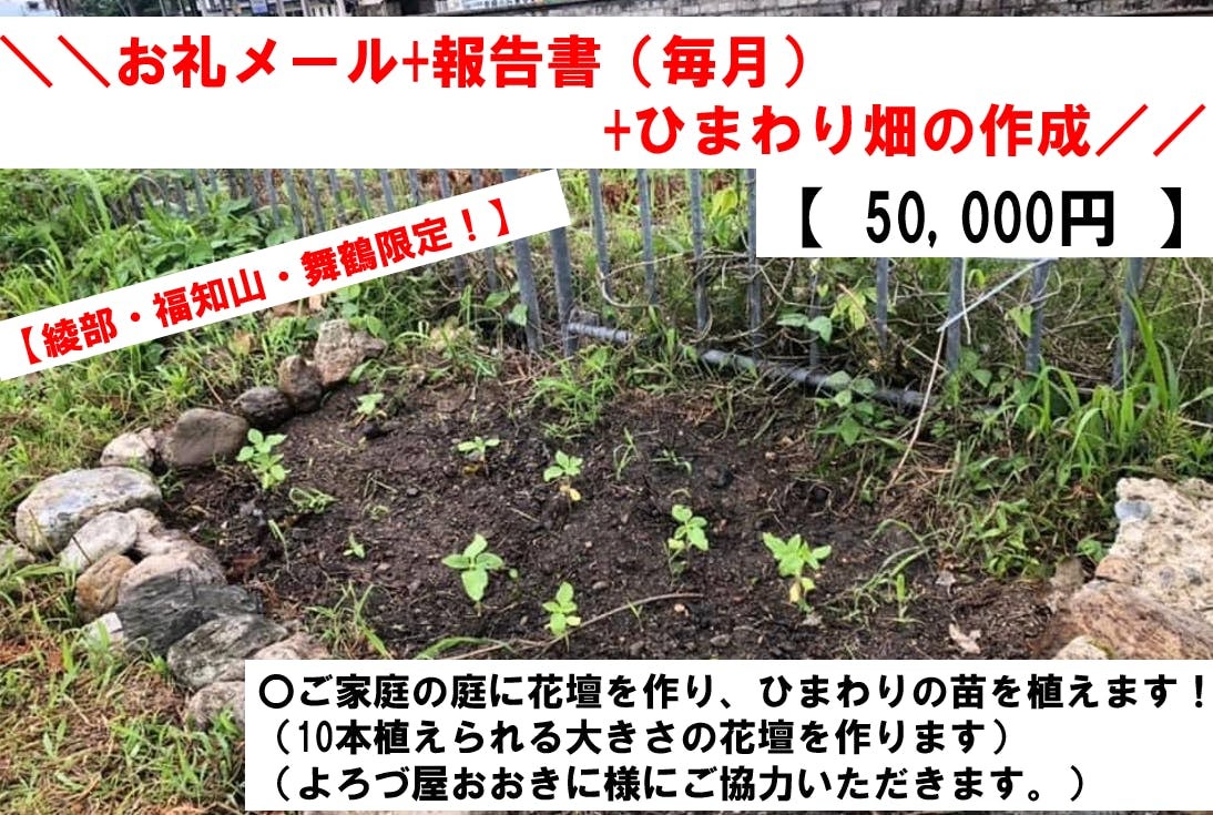 【 50,000円】 お礼メール+報告書(毎月)+ひまわり畑の作成
