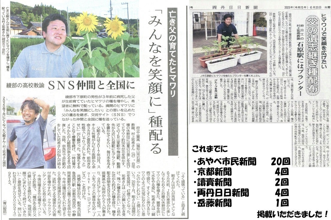 今年度は代表の村上が勤務する「京都府立工業高等学校」の最寄り駅である石原駅にもひまわりのプランターを置かせていただきました!