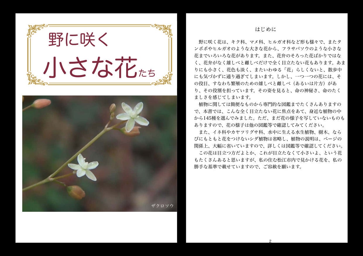 支援金額 3,000円 本プロジェクトの書籍「野に咲く小さな花たち」A5判(307頁 1,980円)1冊