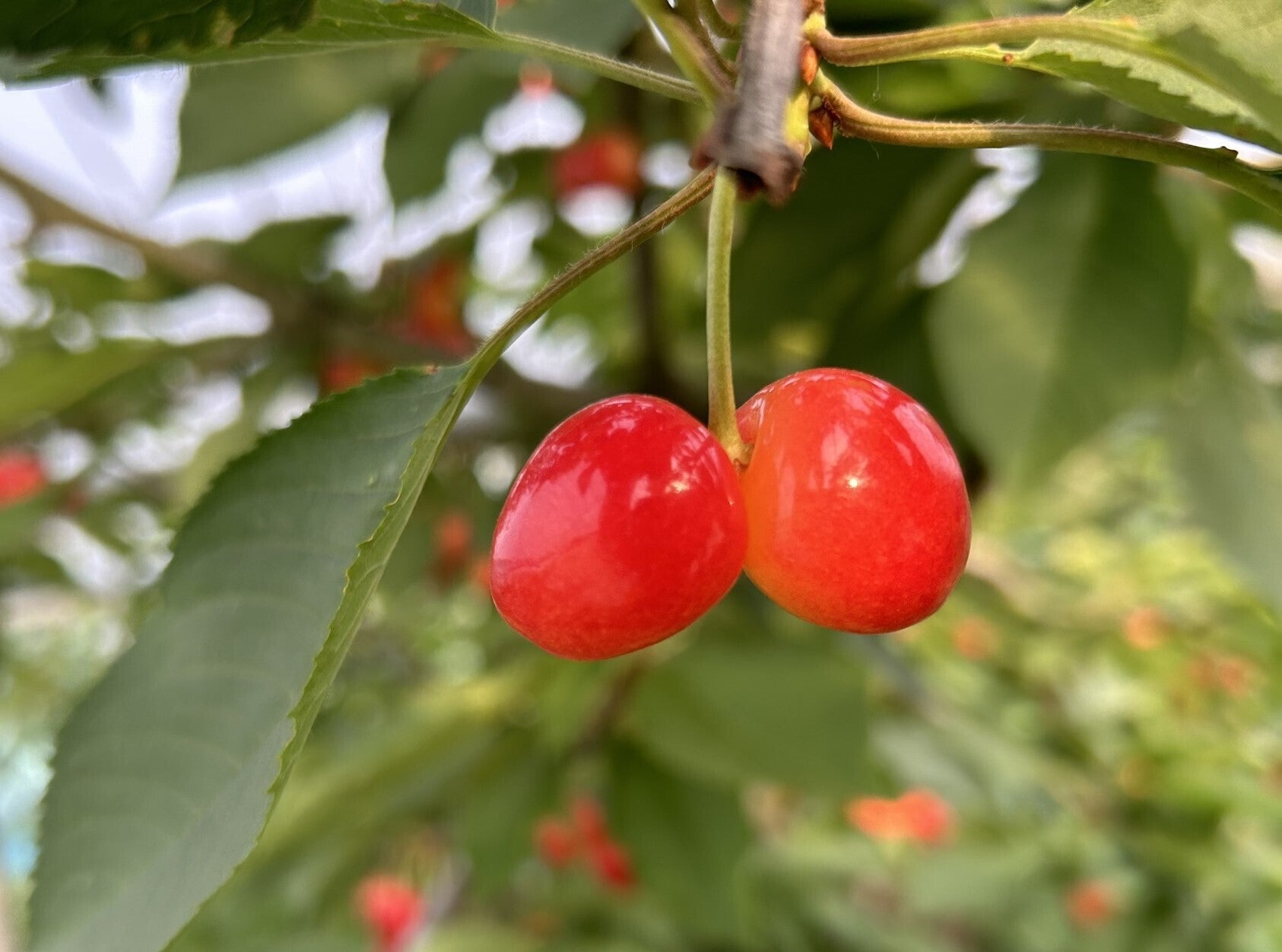双子果は一つの軸に二つの実がつくとても可愛いさくらんぼです。