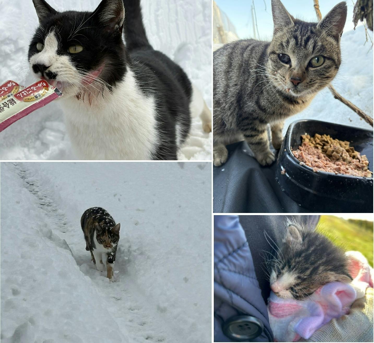 冬場は雪が多いため猫たちの食べ物も少なく、逃げ込んだ場所から大雪で出られなくなることもあります。