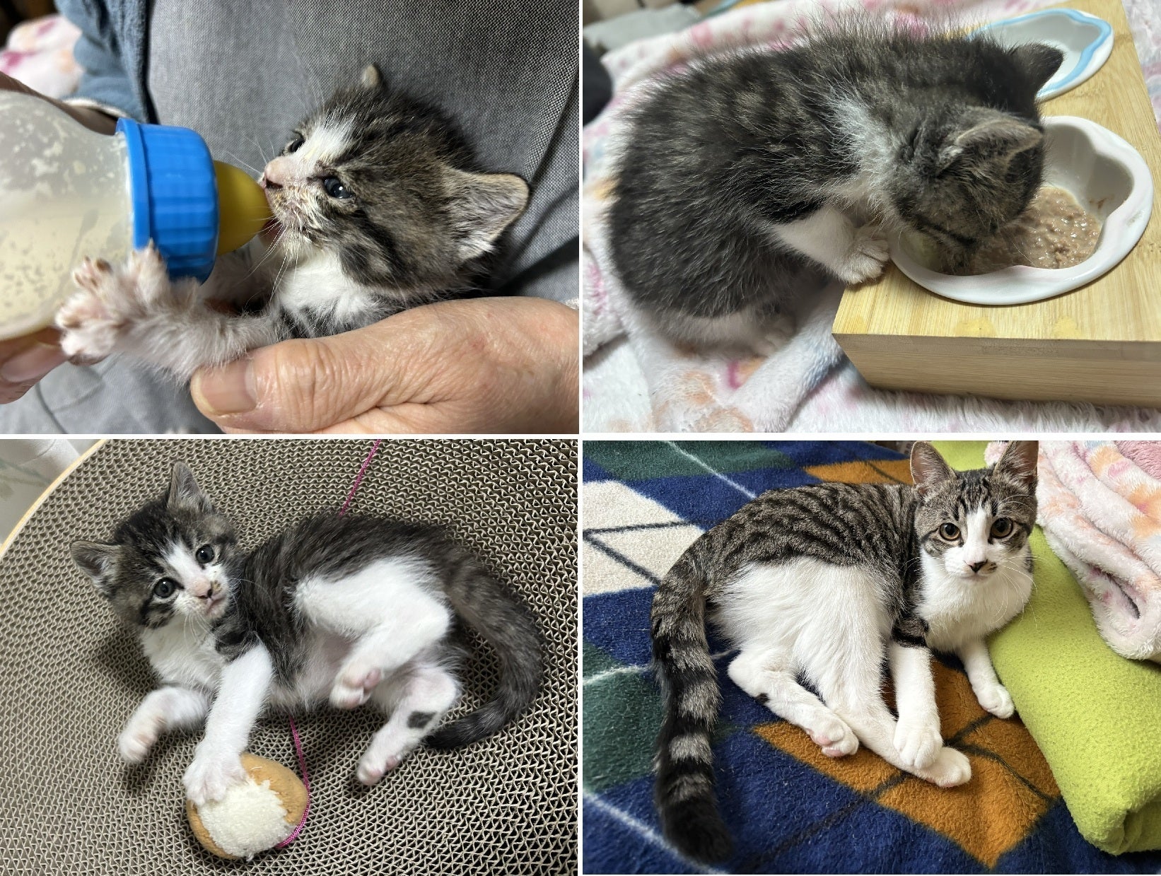 昨年の11月に氷点下の気温の中でたった一人で鳴いていた子猫のぱおちゃんは、お世話係がママとなり大切に育ててきました。今は生後5か月になりとても元気に走り回っています。