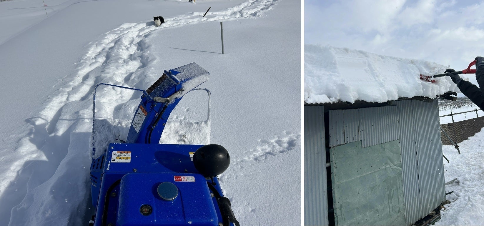 大雪で除雪が間に合わない場合でも、必ず待っている猫達にご飯とお水とホッカイロを届けに行き、猫達の小屋が雪で潰れないように毎日雪を下して安全に暮らせるように見守っています。