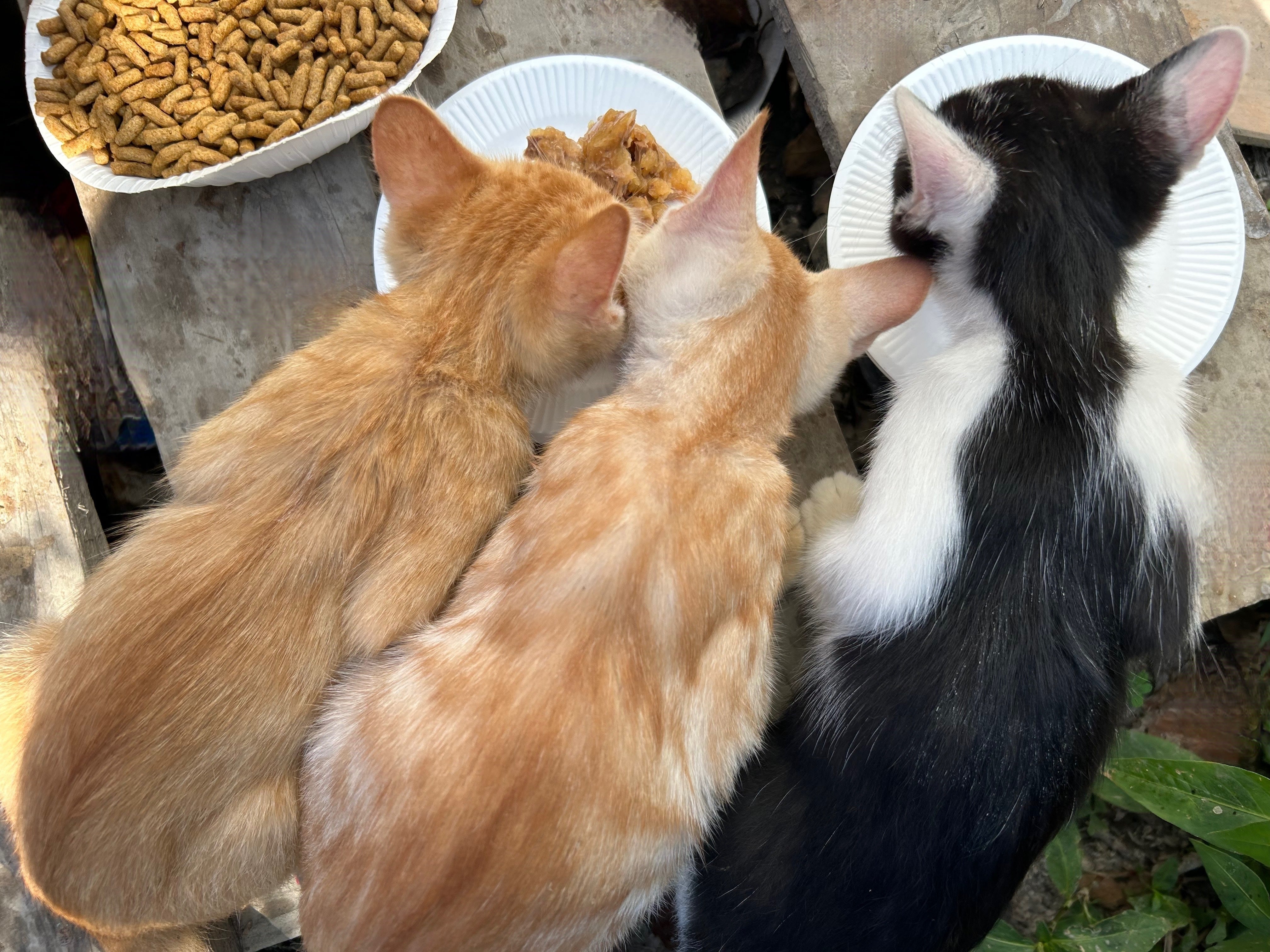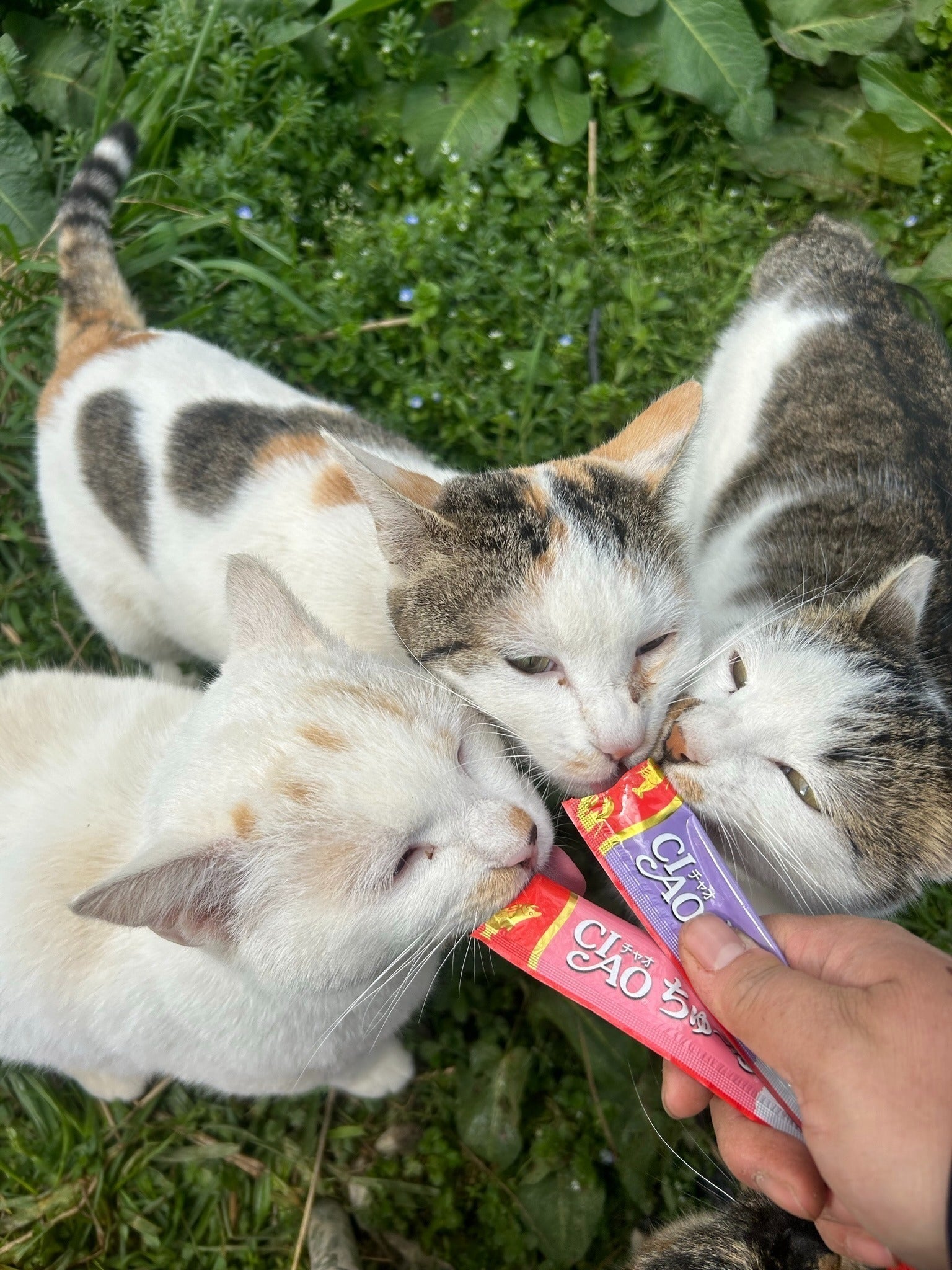 その中で必死に生きる猫達を守るためにどんなに悪天候でも毎日猫たちの元へ向かい、お世話をしています。