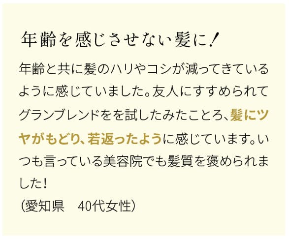 年齢を重ねた髪に起こる悩み、ボリュームの減少、パサつき、まとまりにくさ。