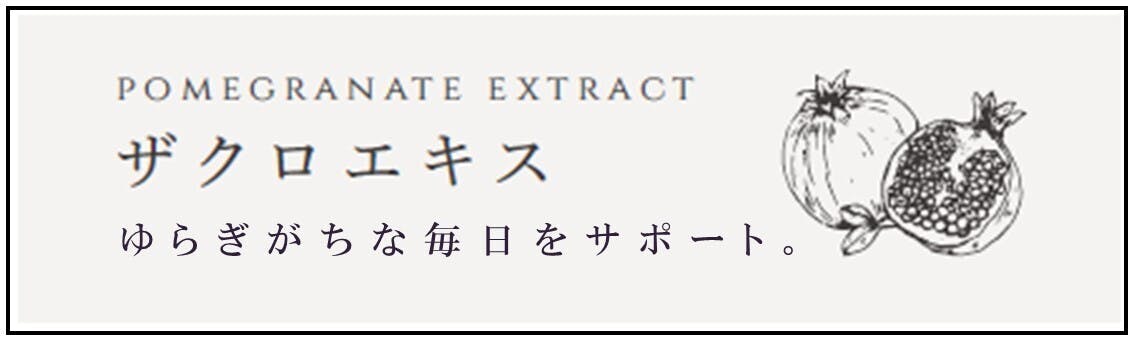 ザクロエキスに含まれる植物性エストロゲンは、女性ホルモン「エストロゲン」と同じ働きをし、ゆらぎがちな毎日をサポートしてくれます。また、天然ポリフェノール・エラグ酸も含まれており、高い抗酸化作用で活性酸素を除去し、身体が酸化することを防いでくれます。