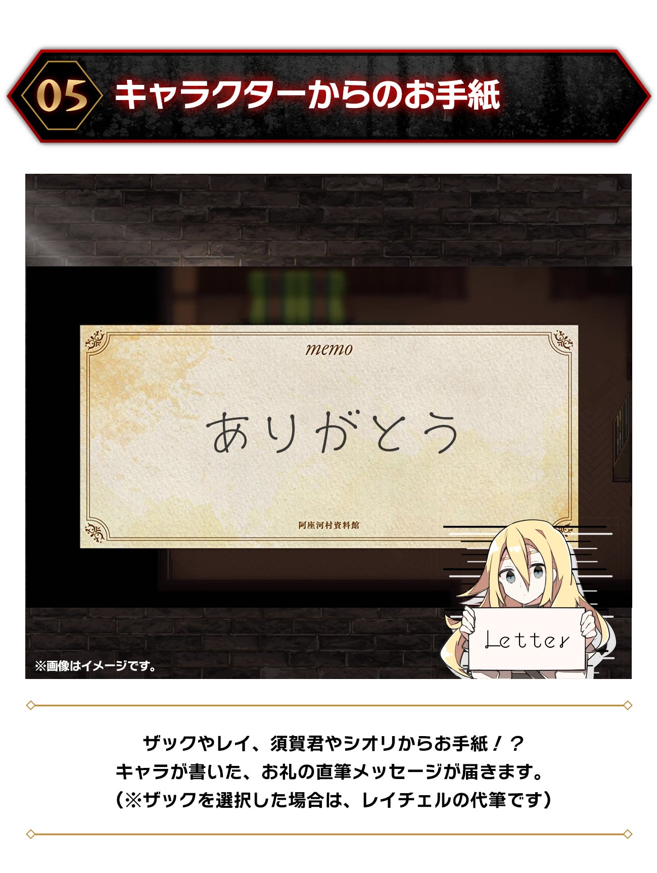 「ザック」役の声優・岡本信彦さんのご協力で、「貴方の名前をザックが呼びかけてくれる」10~15秒の特別ボイスをオリジナルメッセージでお届けします。