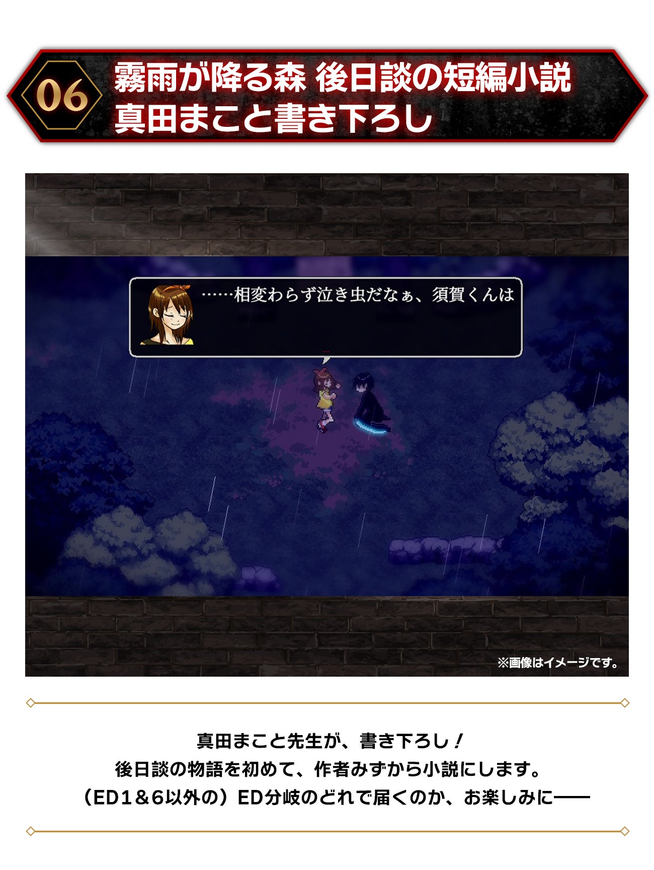 もう一つの名作ゲーム『霧雨が降る森』と同時にグッズ展開されることも決まり――今なお新規のファンが入り続けている、真田まこと作品の名作たちを楽しめる特別な場所となる予定です。